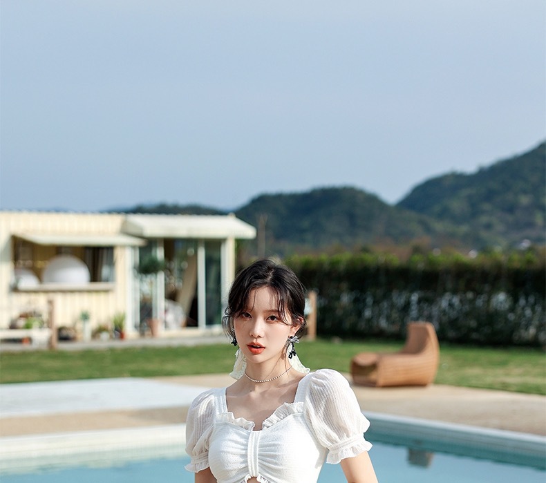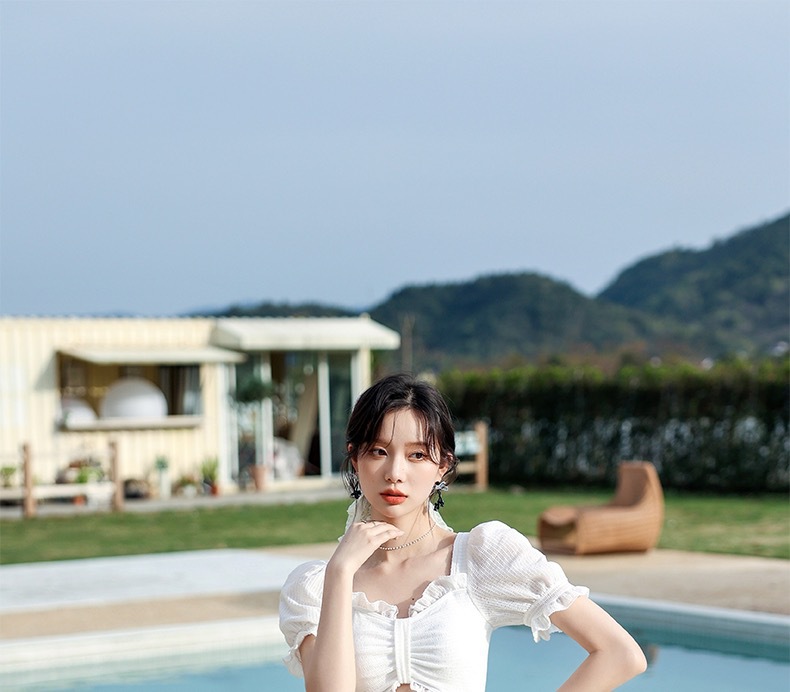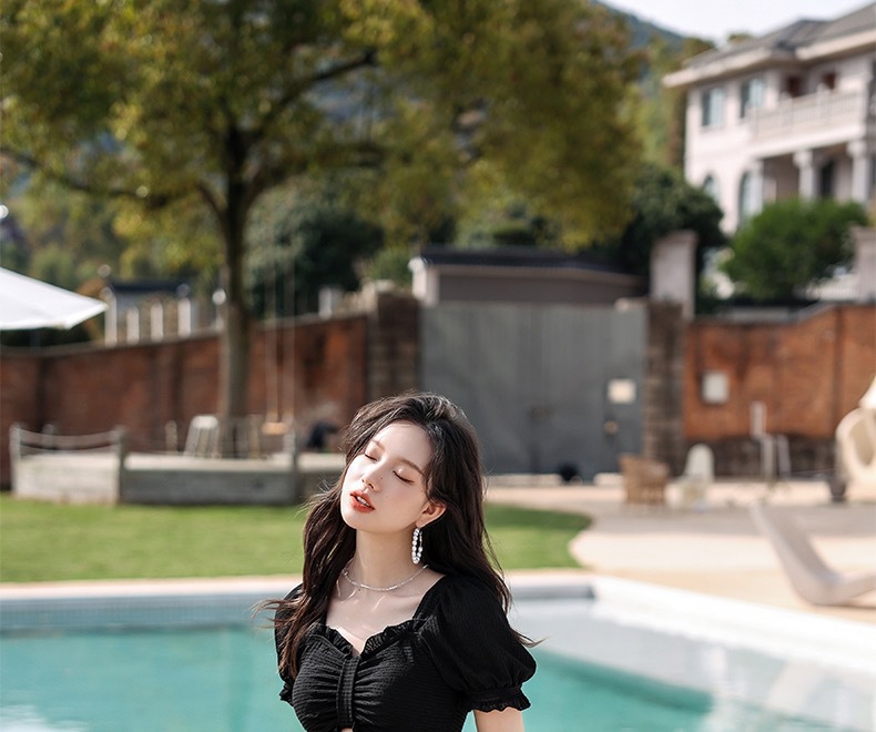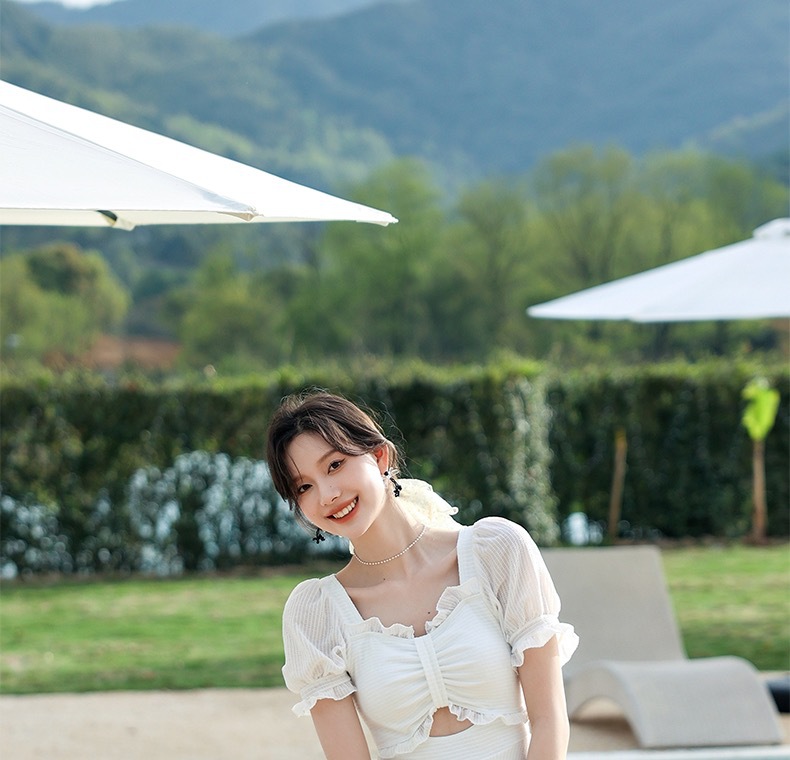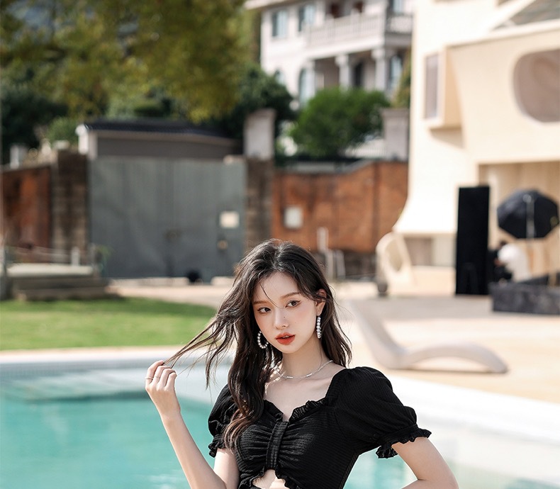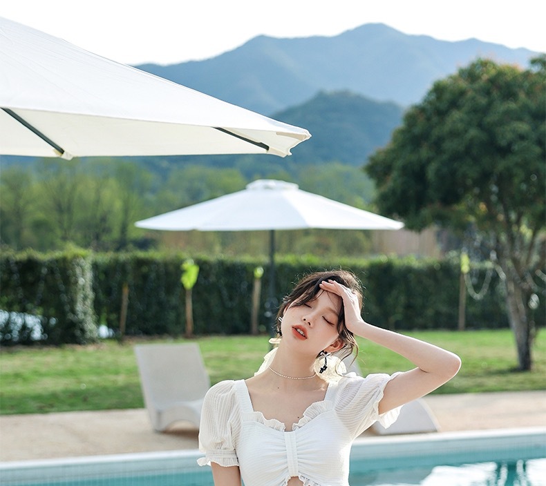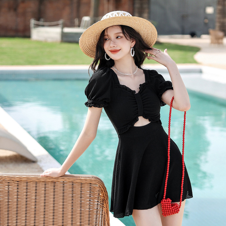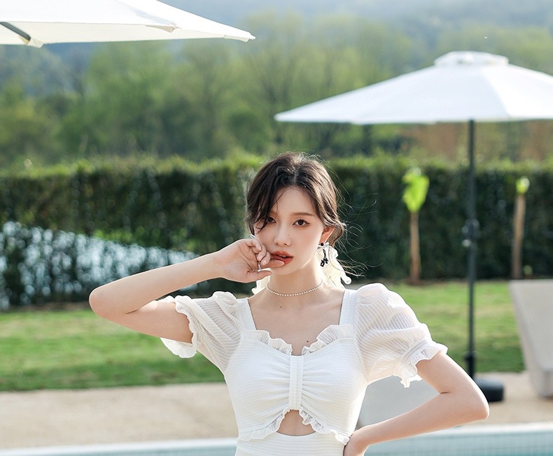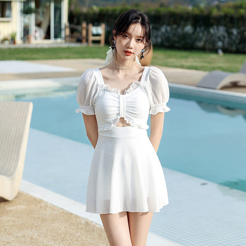 한국 섹시한 수영복 여성의 원피스 보수적 배꼽 커버 슬리밍 등이없는 요정 팬 레이스 수영복 플랫 코너스토어 가기