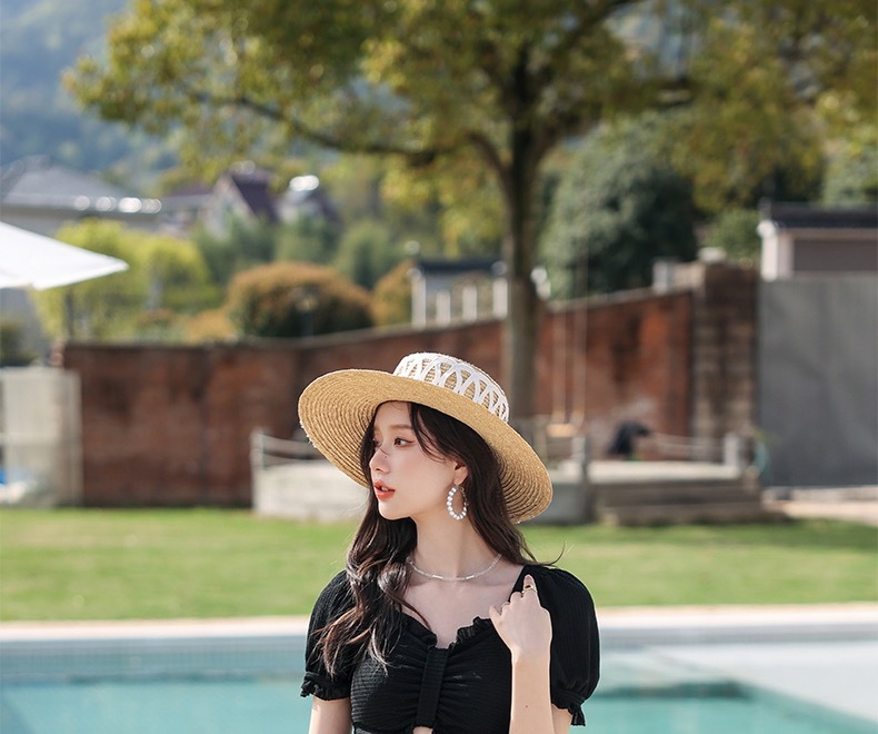 한국 섹시한 수영복 여성의 원피스 보수적 배꼽 커버 슬리밍 등이없는 요정 팬 레이스 수영복 플랫 코너