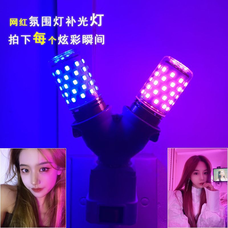 야간 조명 홈 침실 플러그인 컬러 분위기 조명 인터넷 연예인 사진 흔들기 톤 같은 스타일 핑크 블루 라이트