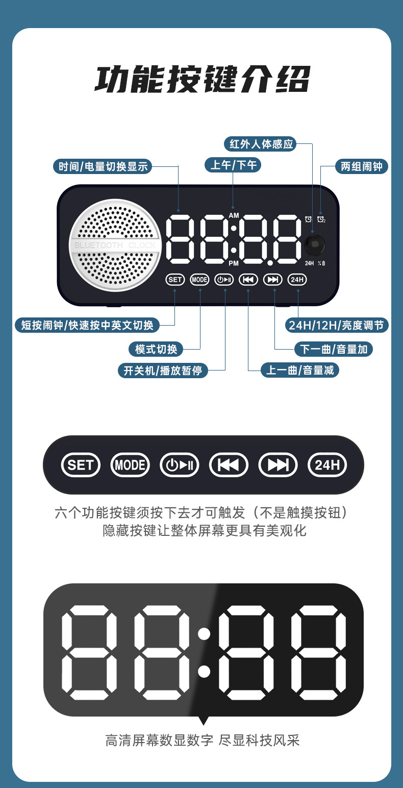 • 밤 검정 [시계 알람 시계는 블루투스 카드가 될 수 있습니다]]
