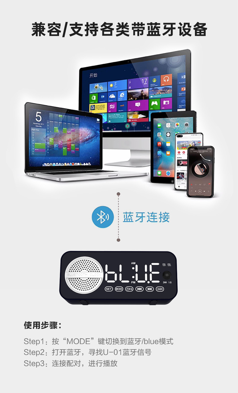 • 우아한 흰색 시계 알람 시계는 블루투스 카드가 될 수 있습니다]