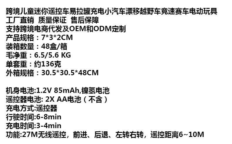 크로스 보더 어린이 미니 원격 제어 자동차 캔 충전 자동차 드리프트 오프로드 차량 속도 경주 전기 장난감스토어 가기