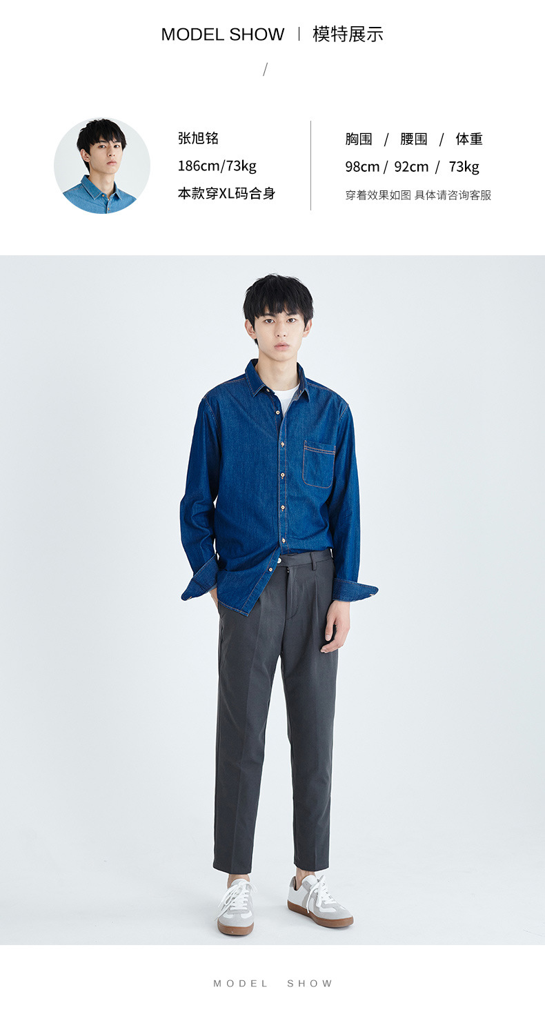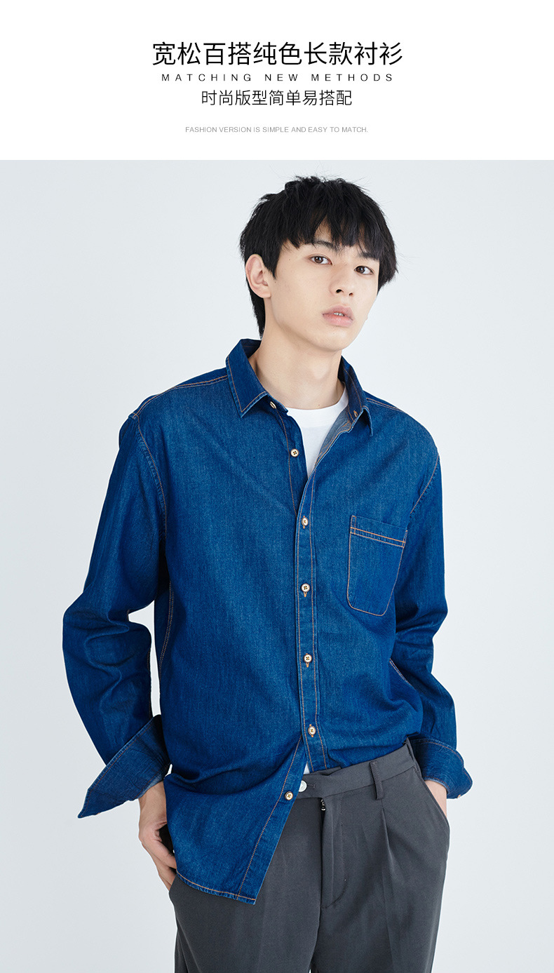 [선택] 동유 봄과 여름 면 일본 데님 셔츠 남자의 복고풍 슬림 캐주얼 셔츠 남자의 재고 도매스토어 가기