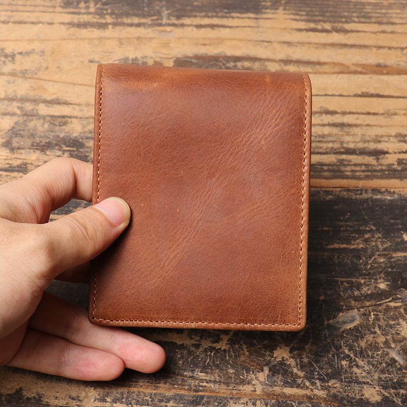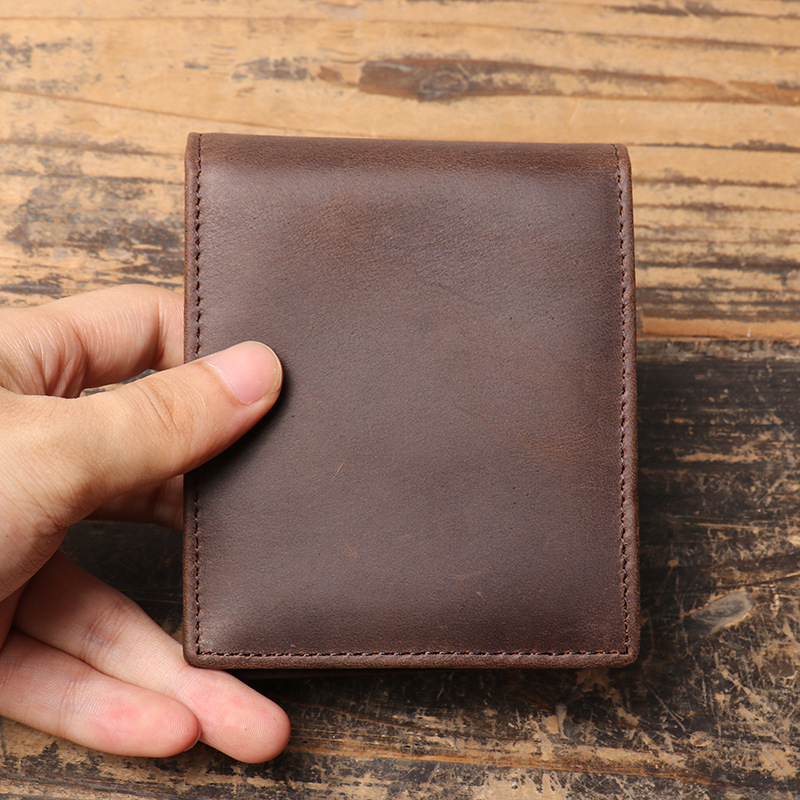 유럽과 미국의 복고풍 남성 크레이지 호스 가죽 짧은 지갑 정품 가죽 멀티 카드 슬롯 카드 홀더 여성은 RFID 지갑 동전 지갑으로 사용할 수 있습니다스토어 가기