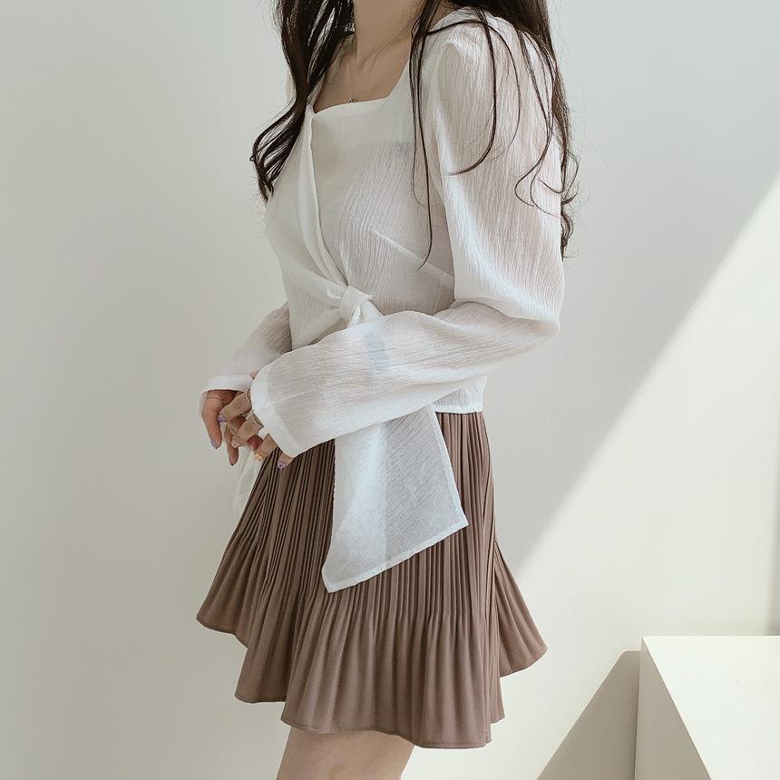 봄 가을 디자인감 있는 패셔너블한 2025 한국 스타일 스퀘어 넥 셔츠 퍼프 긴팔 끈 묶는 슬림핏 여성 셔츠