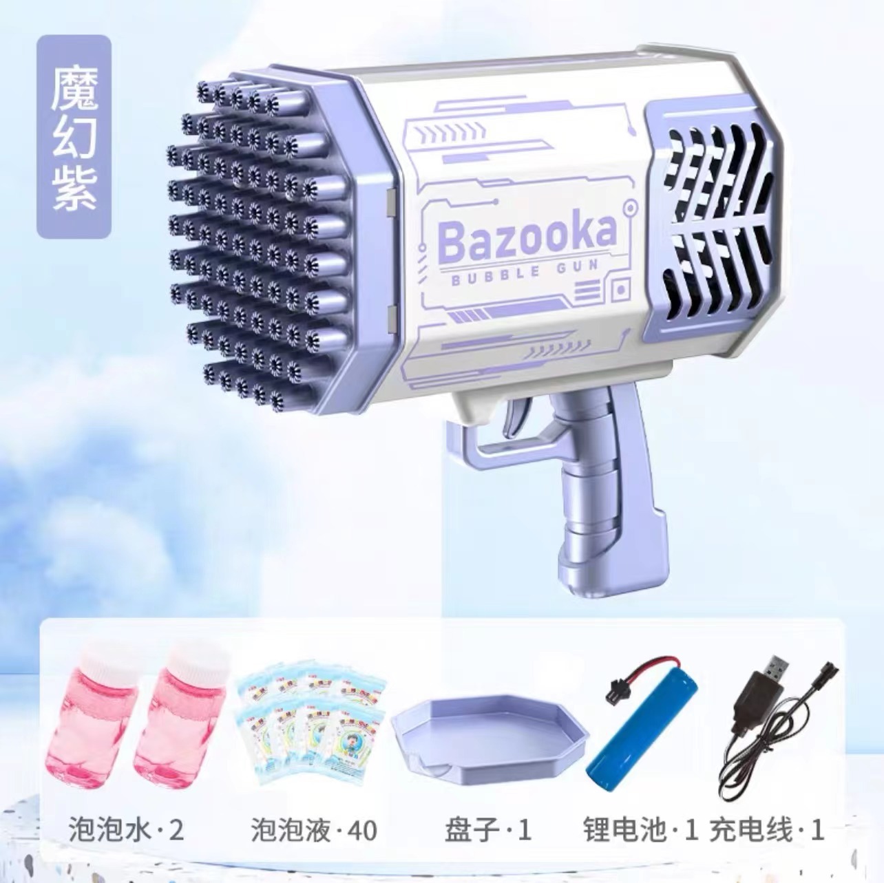 국경 간 뜨거운 판매 40 홀 공간 빛 거품 기계 미니 버전 개틀링 전기 거품 부는 휴대용 어린이 장난감