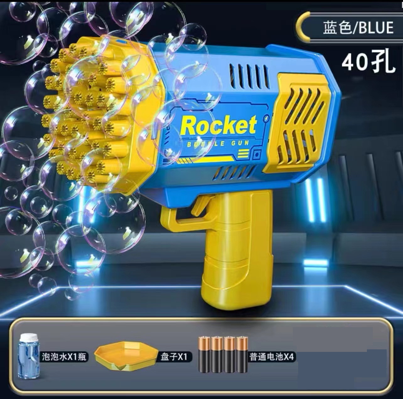 • 40홀 파란색과 노란색 [배터리 4개 + 버블수 1병 + 버블액 10팩 포함] 전자상거래 상자
