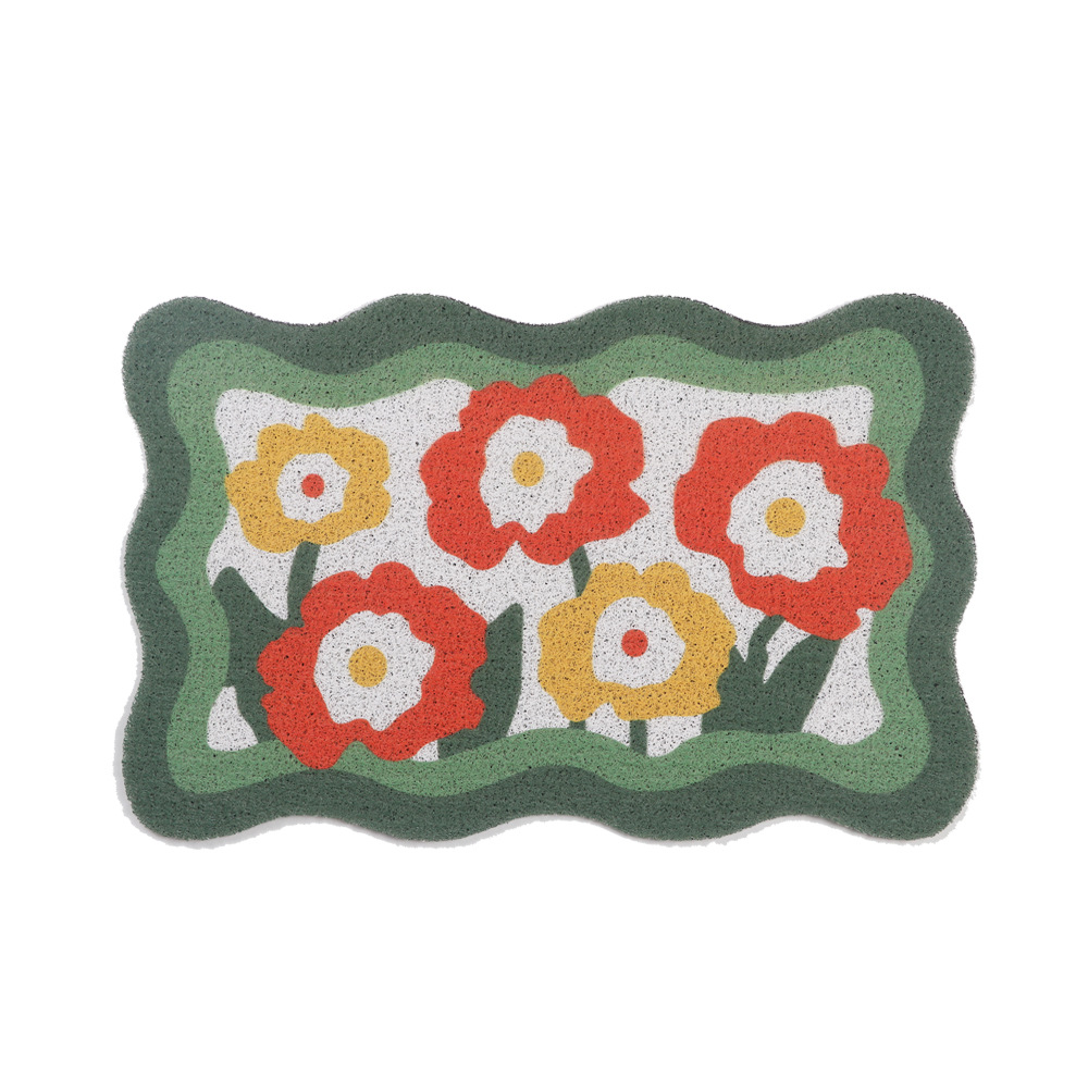 체스 판 작은 꽃 만화 바닥 매트 홈 실크 원형 문 절단 가능한 문 매트 꽃 카펫 문 진흙 매트