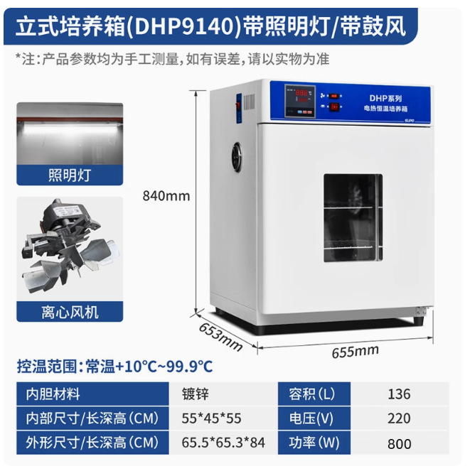 • DHP9140 아연 도금 내부 탱크 140L(송풍기 + 조명 포함)