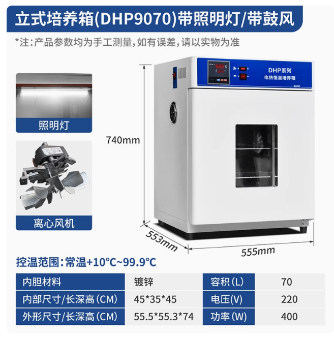 • DHP9070 아연 도금 내부 탱크 70L(송풍기 + 조명 포함)