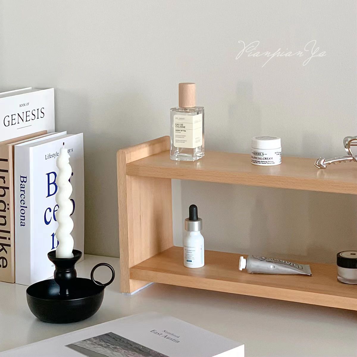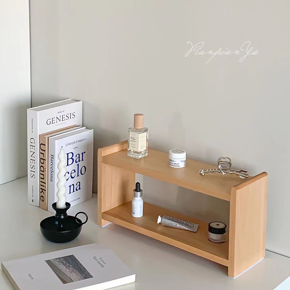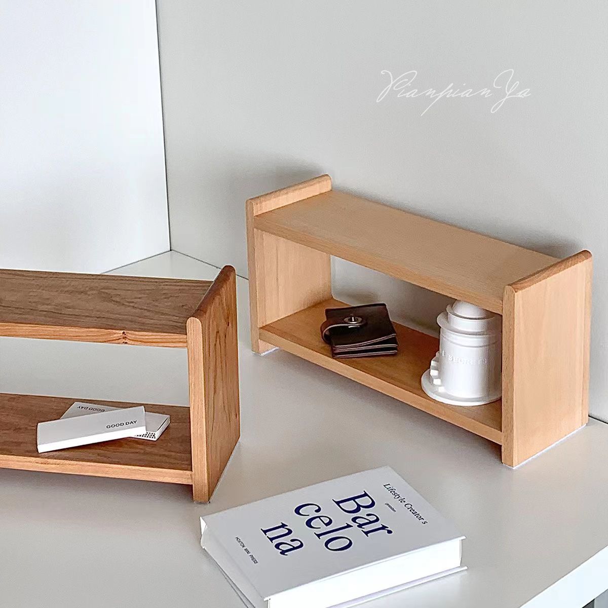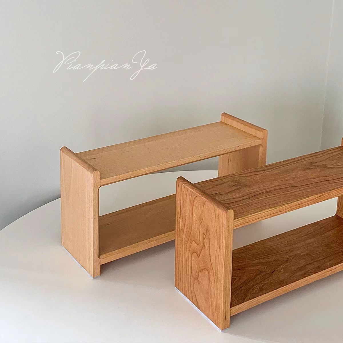 단단한 나무 저장 랙 2 층 체리 너도밤 나무 데스크탑 찻잔 보관 랙 사무실 책상 마무리 랙
