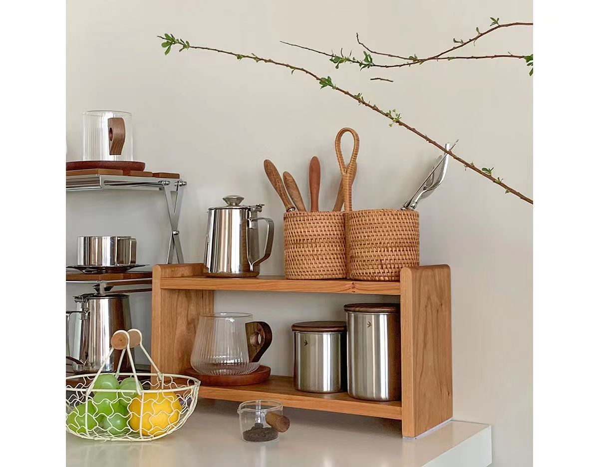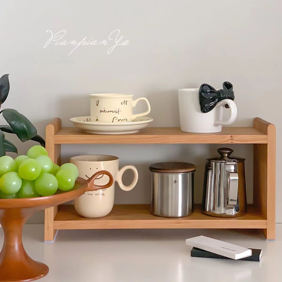 단단한 나무 저장 랙 2 층 체리 너도밤 나무 데스크탑 찻잔 보관 랙 사무실 책상 마무리 랙스토어 가기