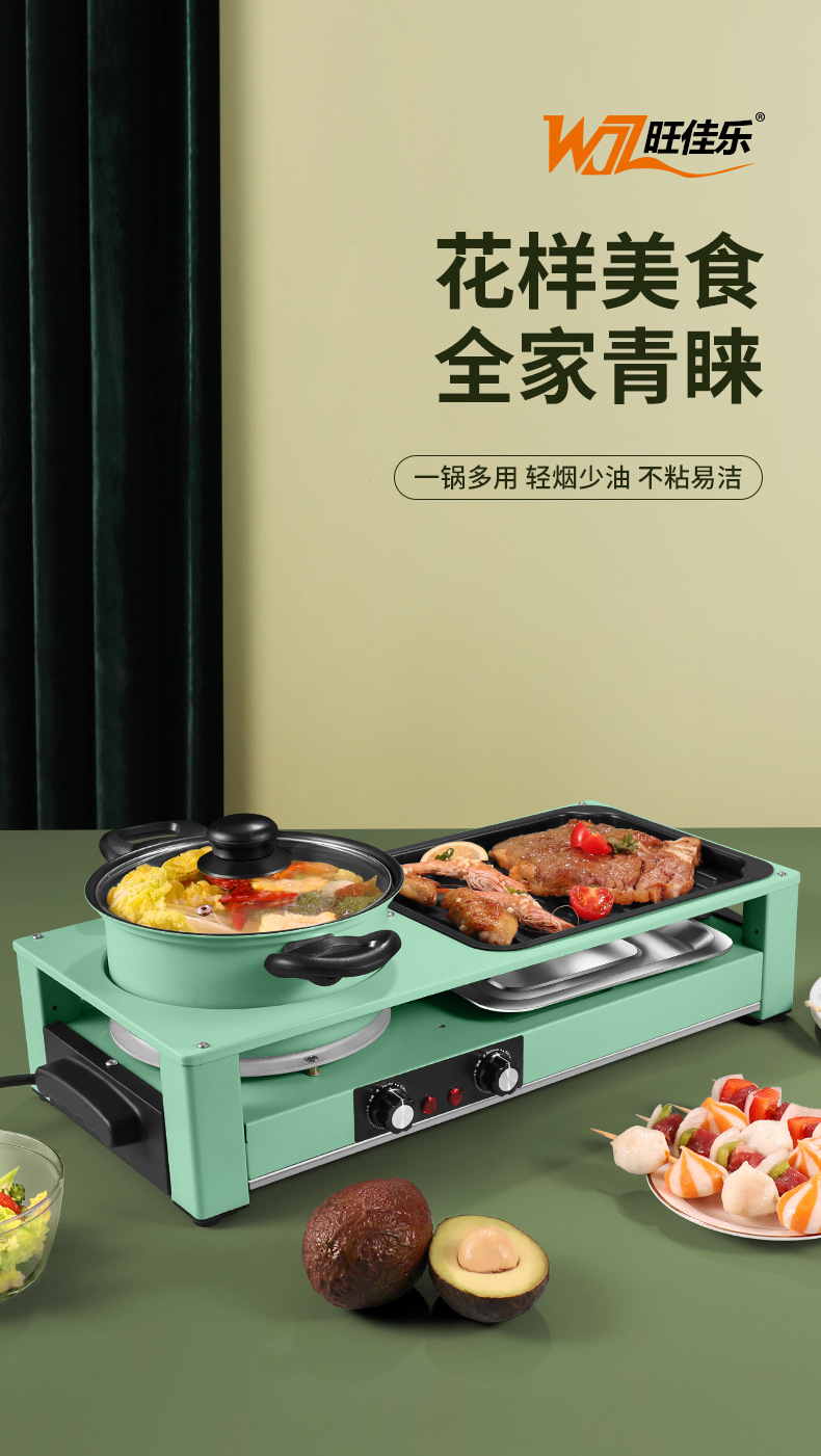 국경 간 맞춤형 도매 전기 그릴 팬, 무연 논스틱 가정용 전기 바베큐 그릴, 다기능 전기 냄비 겸용 그릴스토어 가기