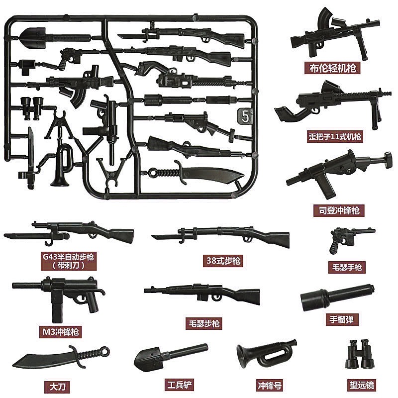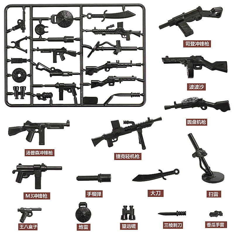 전쟁 말 산 총 기관총 방패 기관총 무거운 무기 제 2 차 세계 대전 건물 블록 군사 액세서리 무기 조각 장비 독점