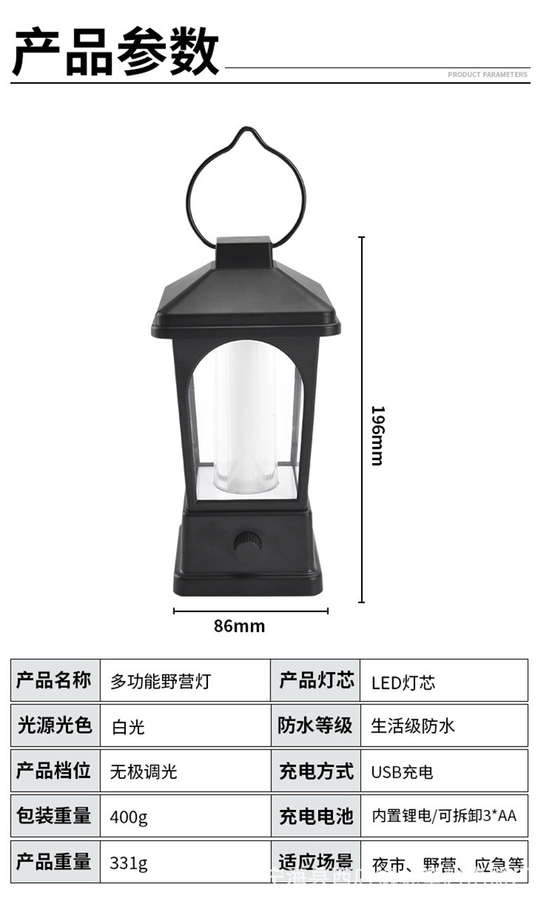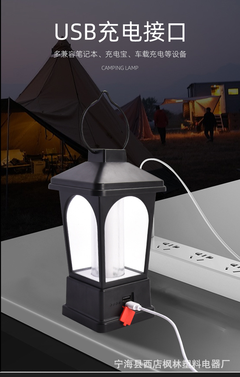 새로운 복고풍 캠핑 램프 다기능 충전식 야외 텐트 램프 휴대용 가정용 비상 조명 장식 램프