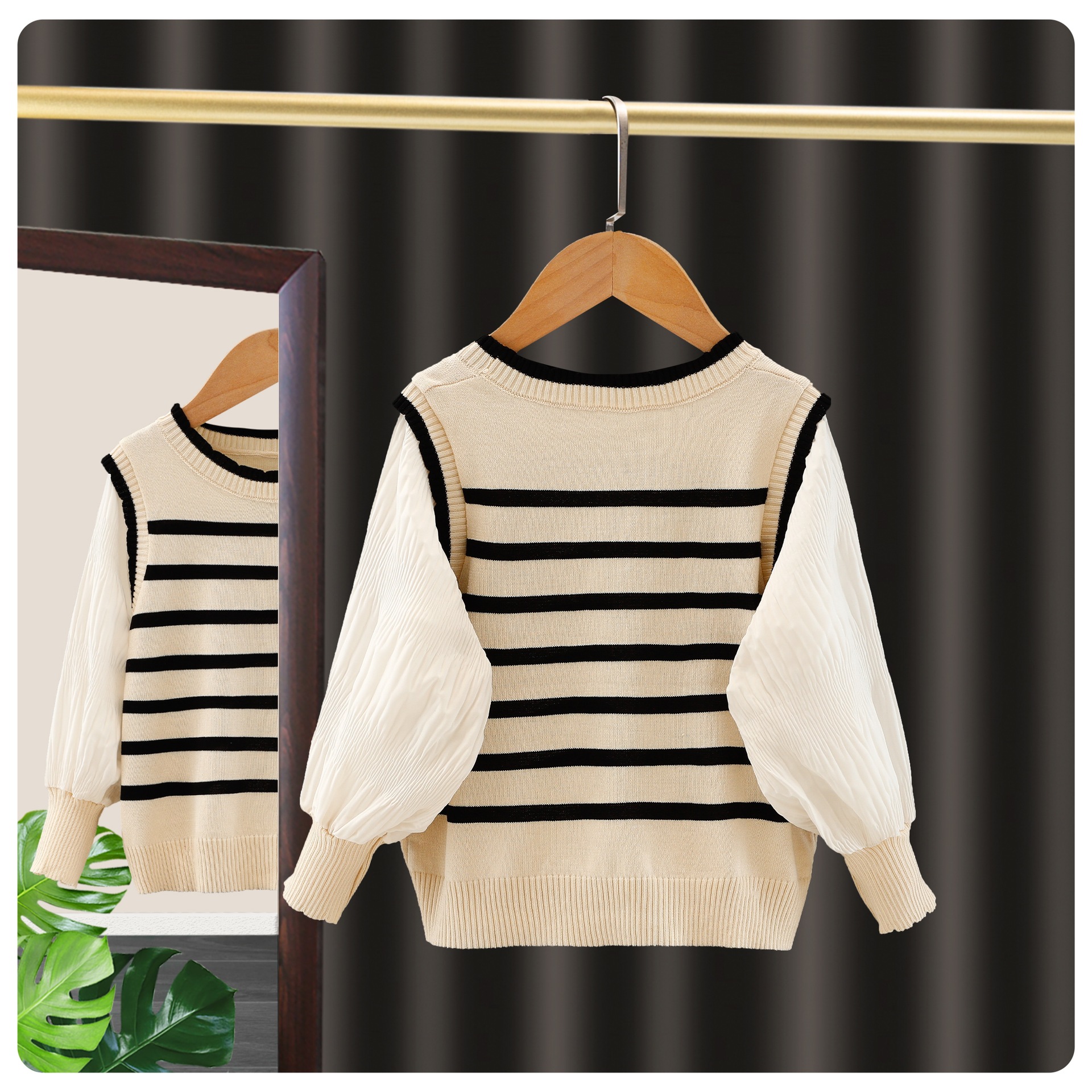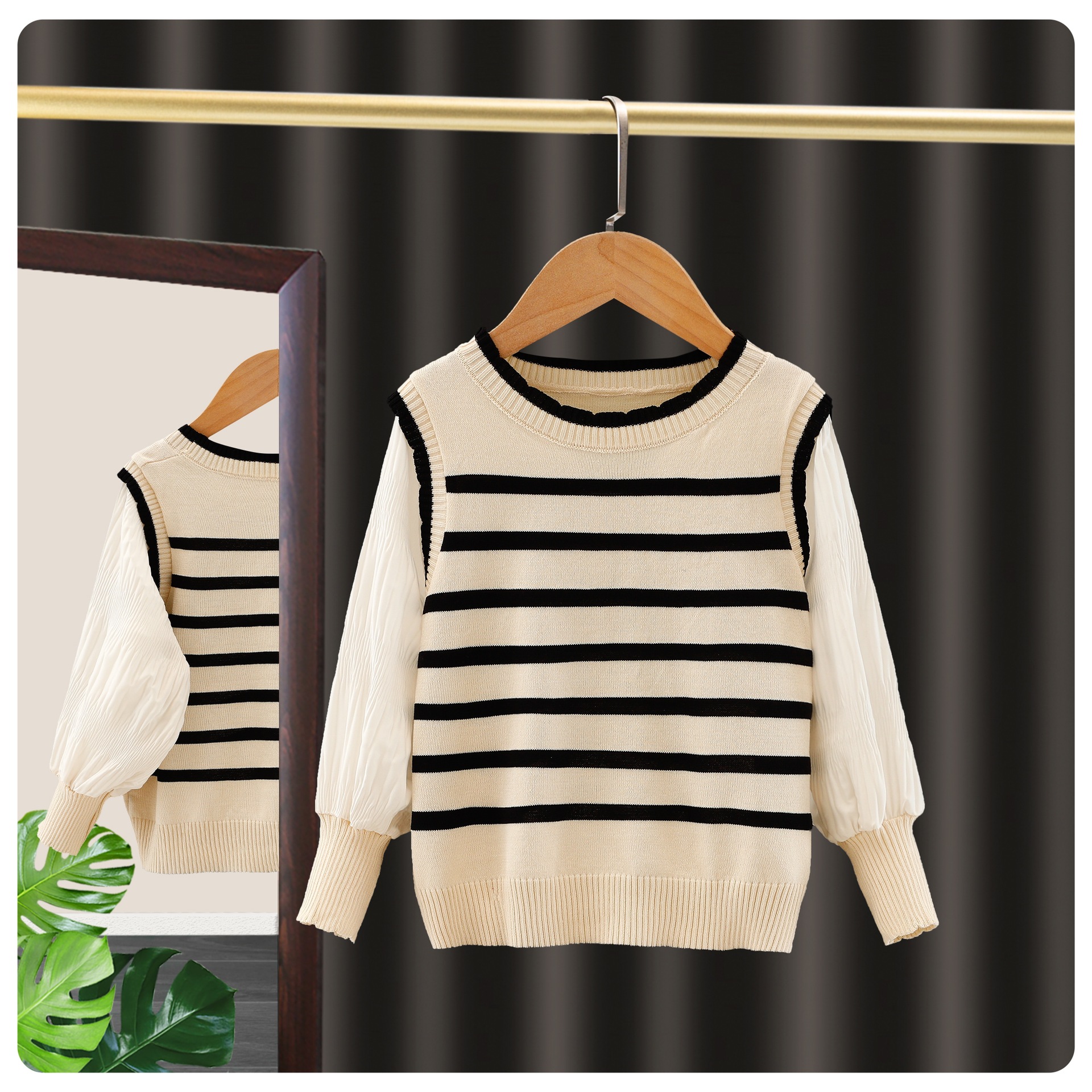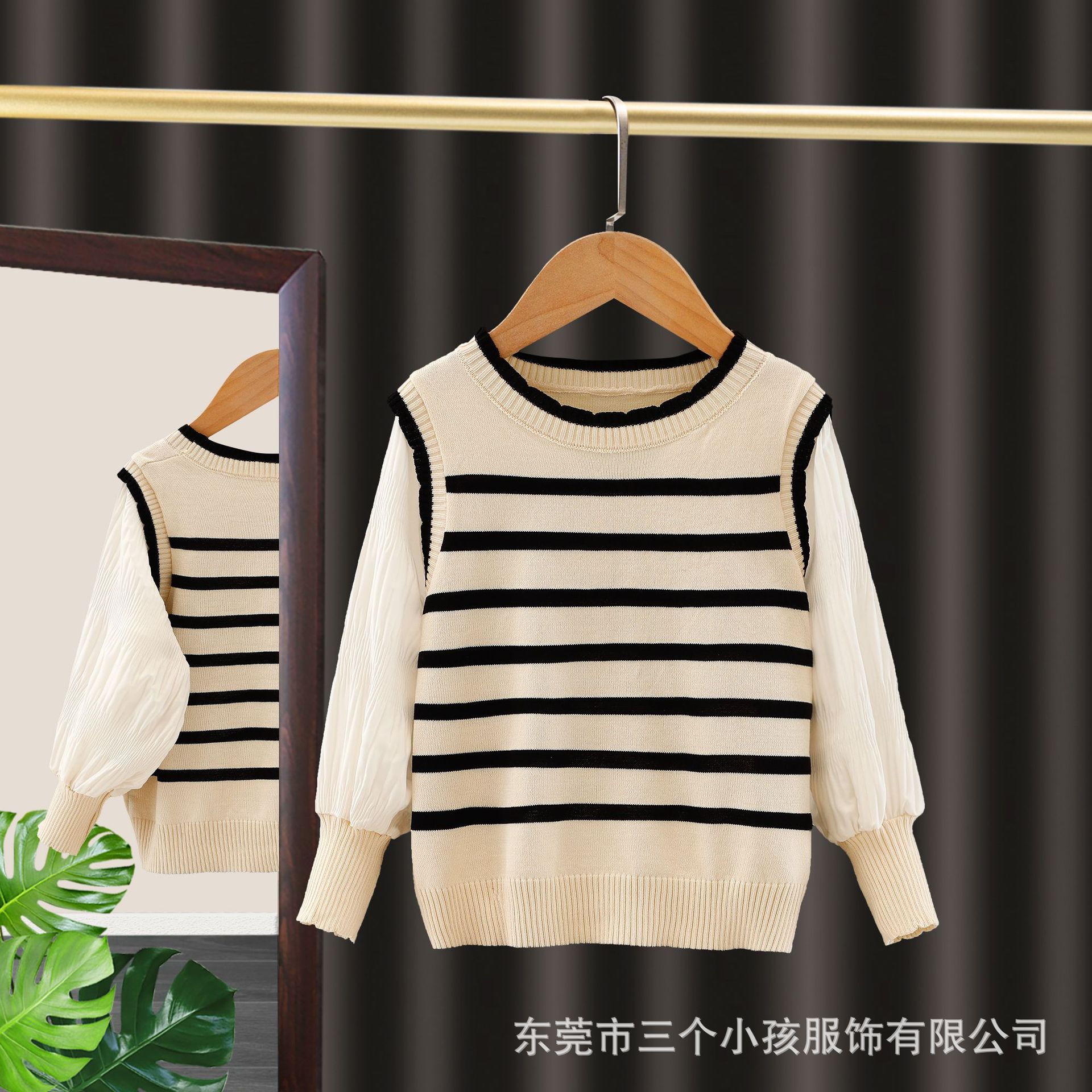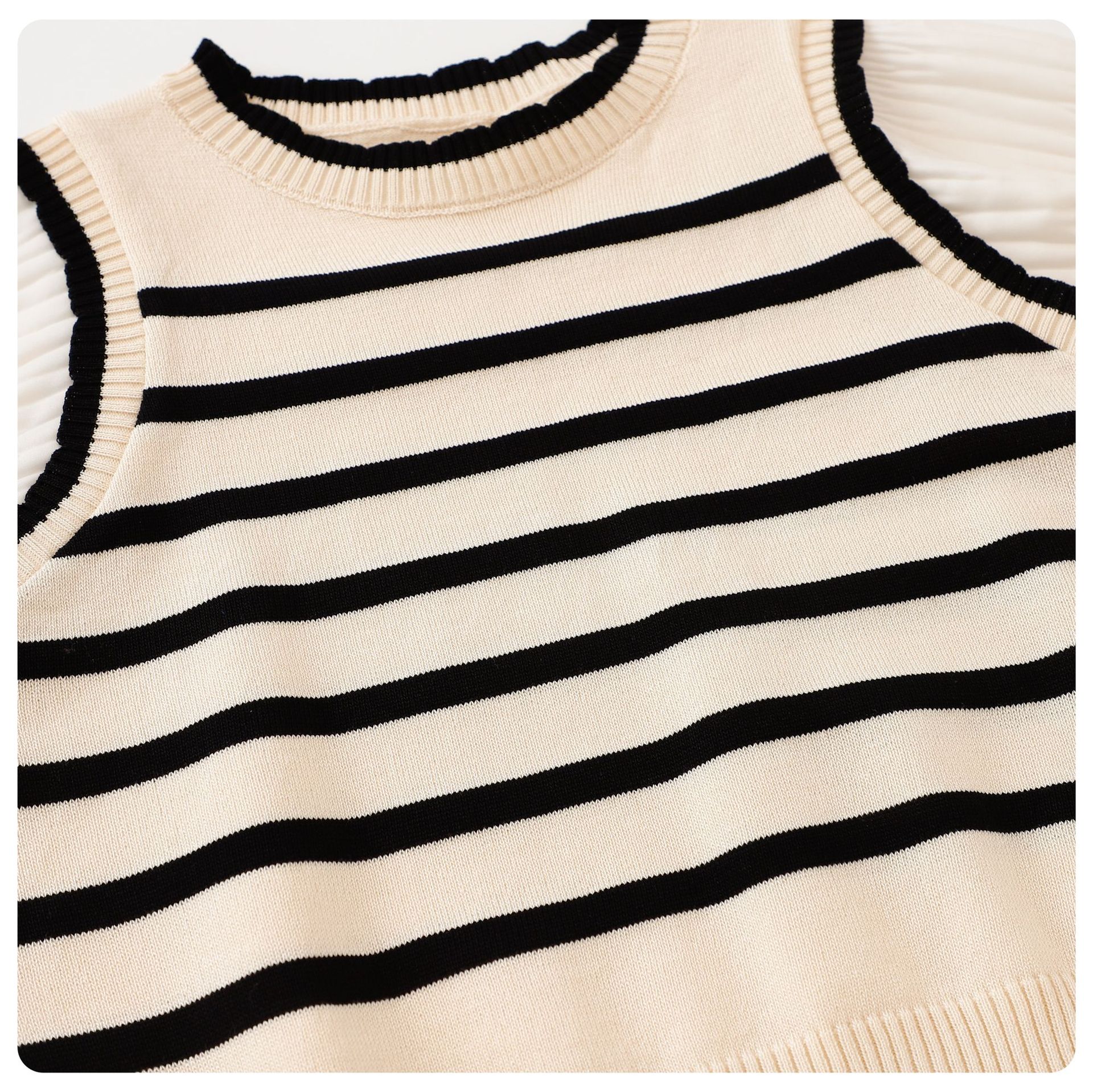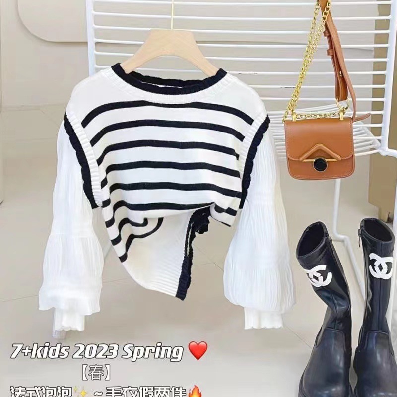 여아 봄과 가을 얇은 모든 매치 폭발성 가짜 투피스 니트웨어 어린이 서양식 트렌디 스위트 프린세스 스타일 스트라이프 의류스토어 가기