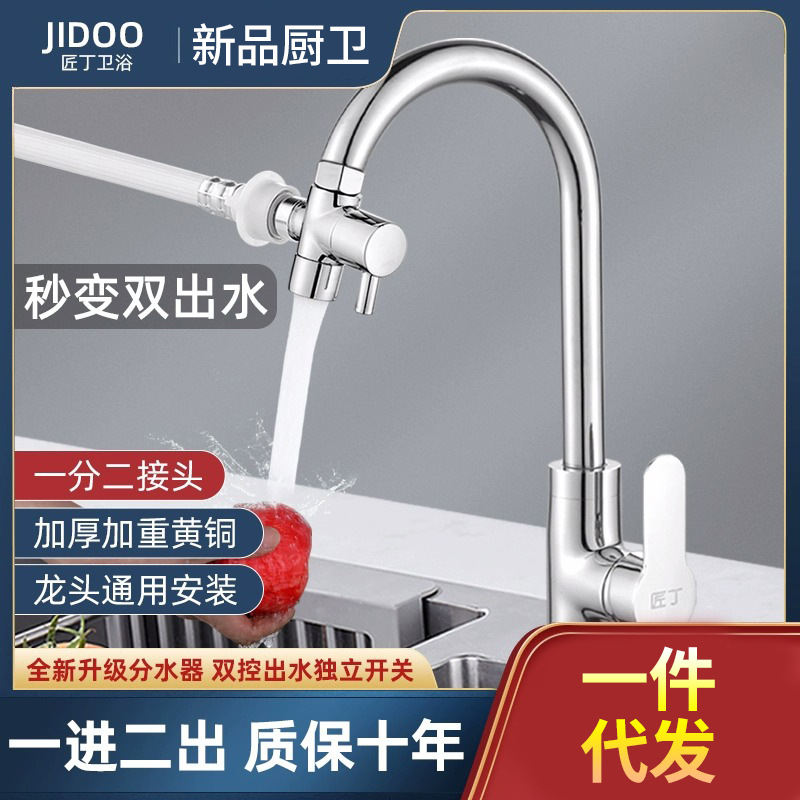 전 구리 키친 수도꼭지 1-2 어댑터 식기 세척기 삼방향 범용 션트 세면기 세면기 물 분리기스토어 가기