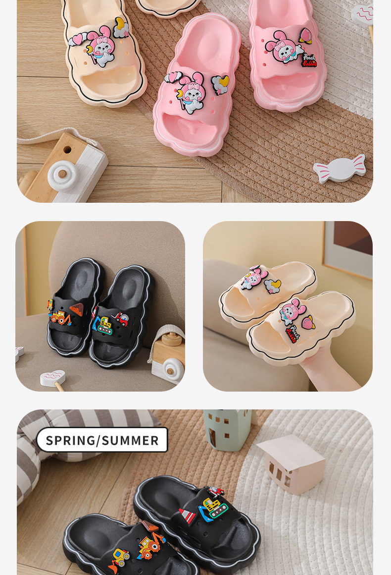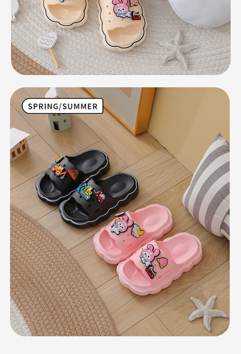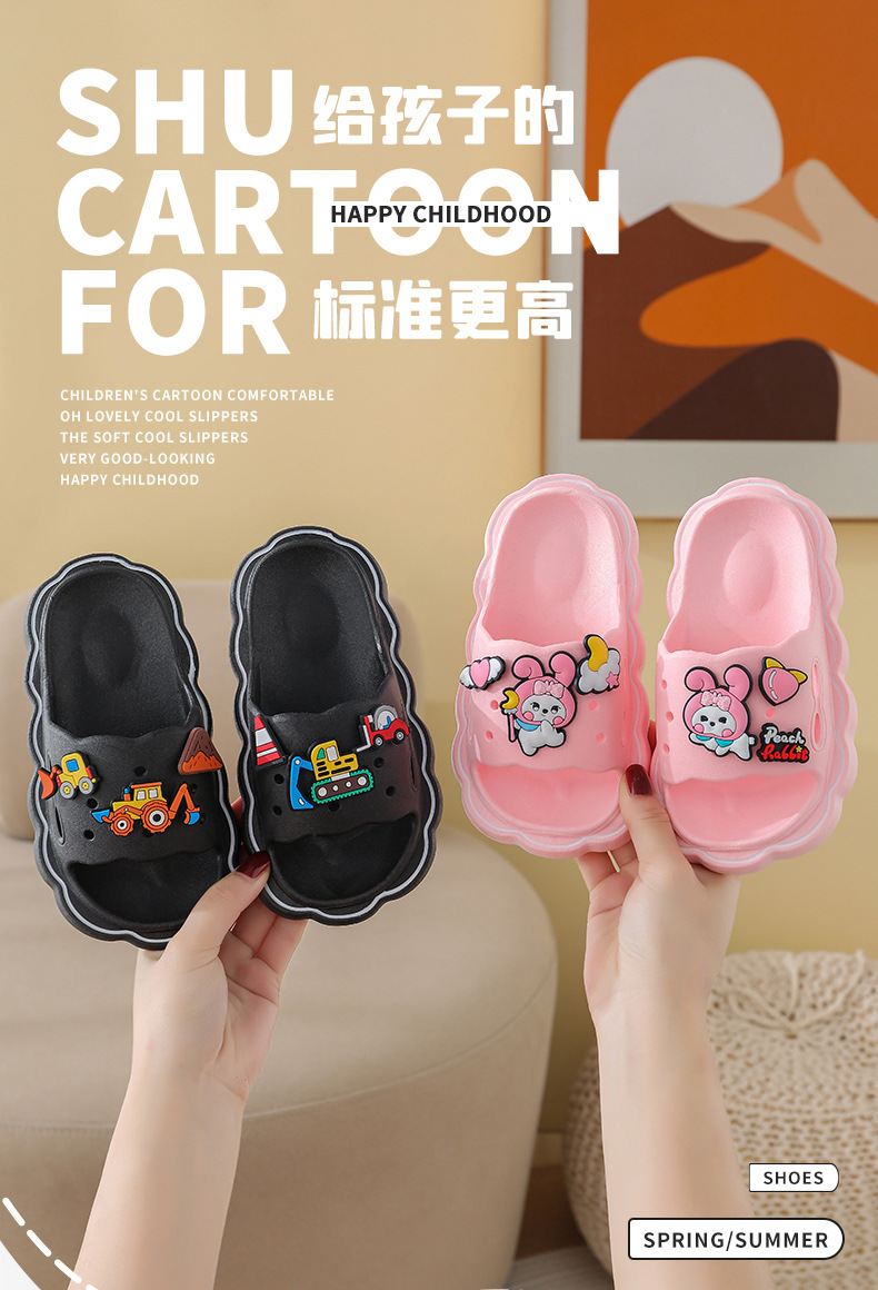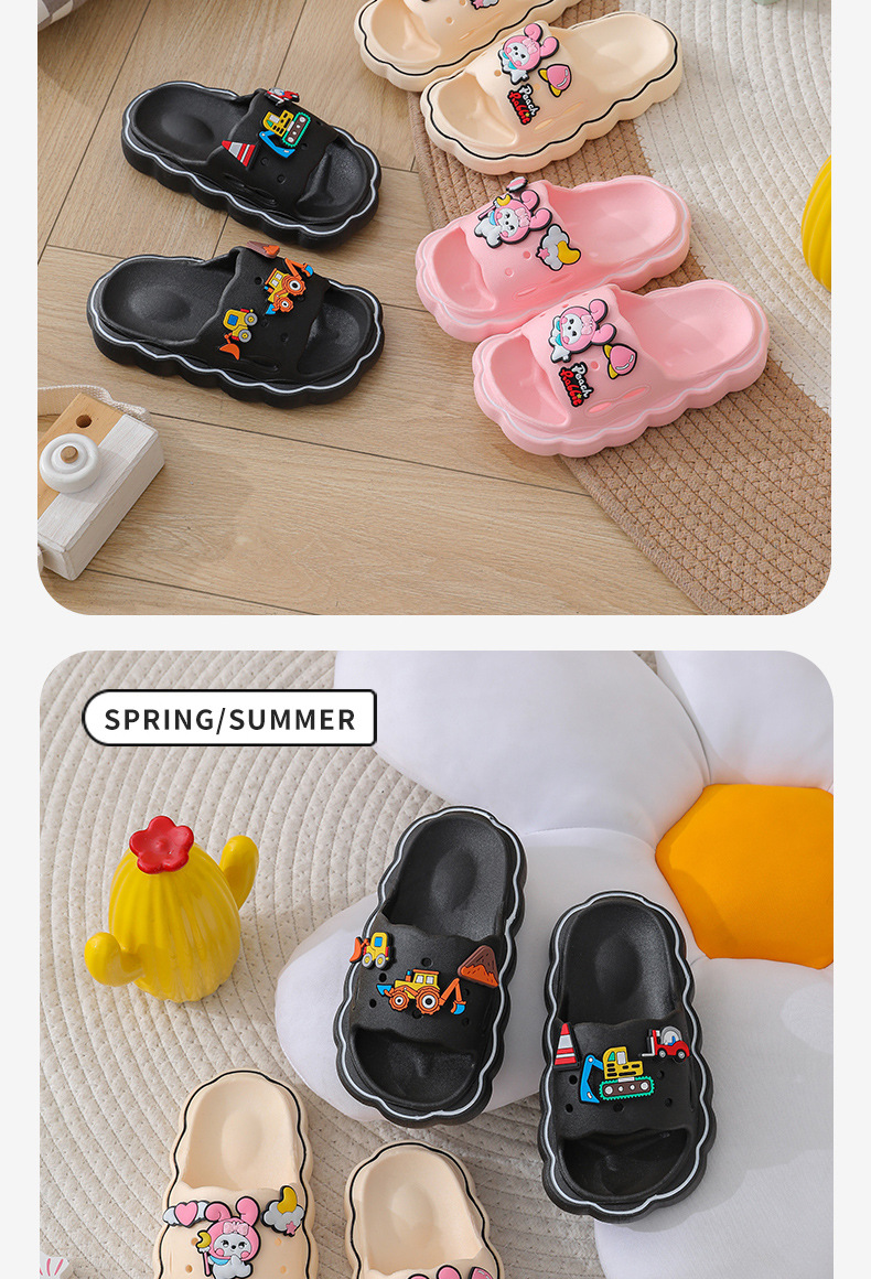 소년과 소녀 여름 만화 굴삭기 복숭아 토끼 새로운 실내 부드러운 바닥 미끄럼 방지 구름 생활 어린이 미끄럼 방지 샌들스토어 가기