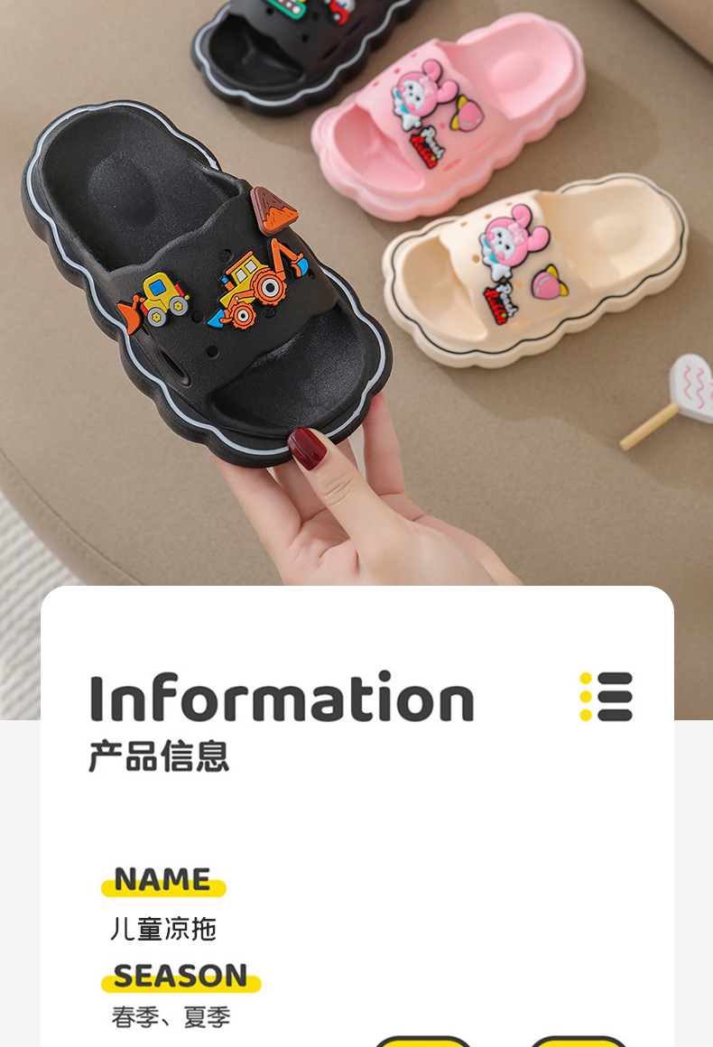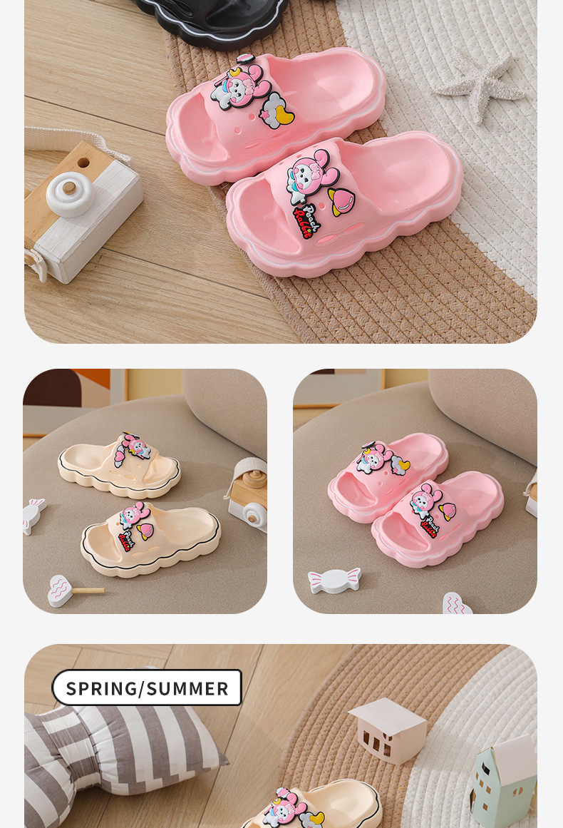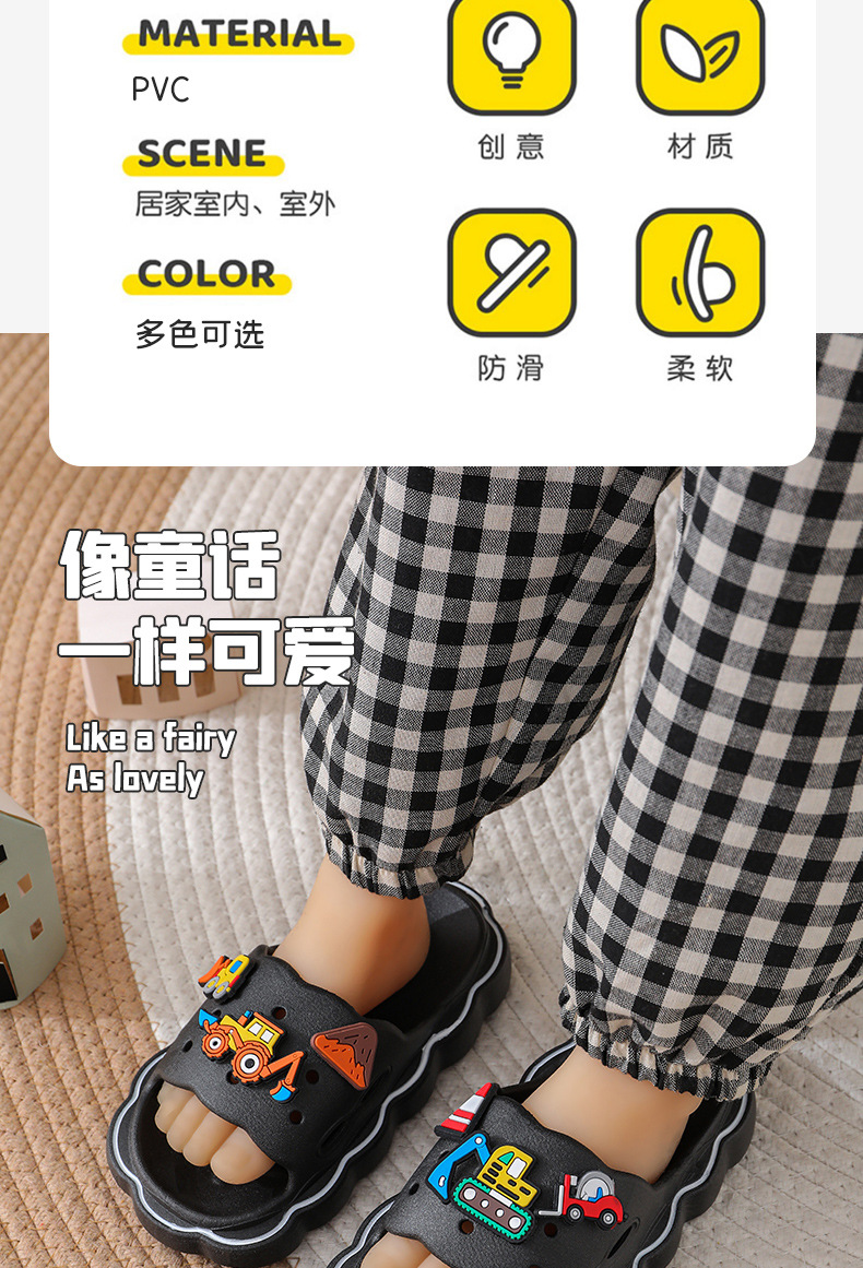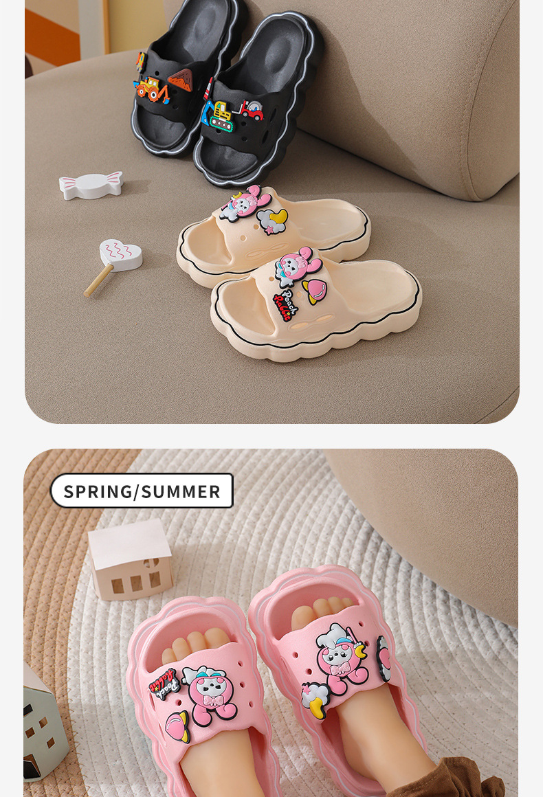 소년과 소녀 여름 만화 굴삭기 복숭아 토끼 새로운 실내 부드러운 바닥 미끄럼 방지 구름 생활 어린이 미끄럼 방지 샌들스토어 가기