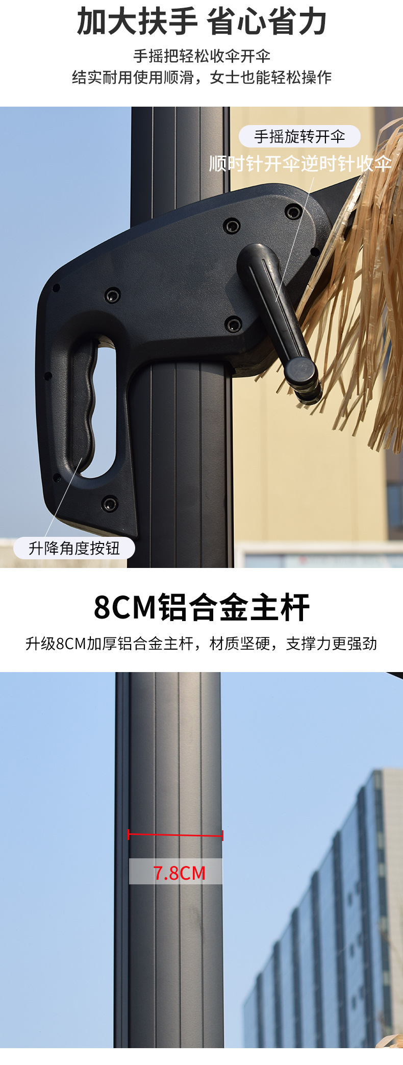 • 나뭇결 컬러 라운드 3* 3m 소형 알루미늄 행잉 우산 [80KG 원형 대리석 베이스 포함]