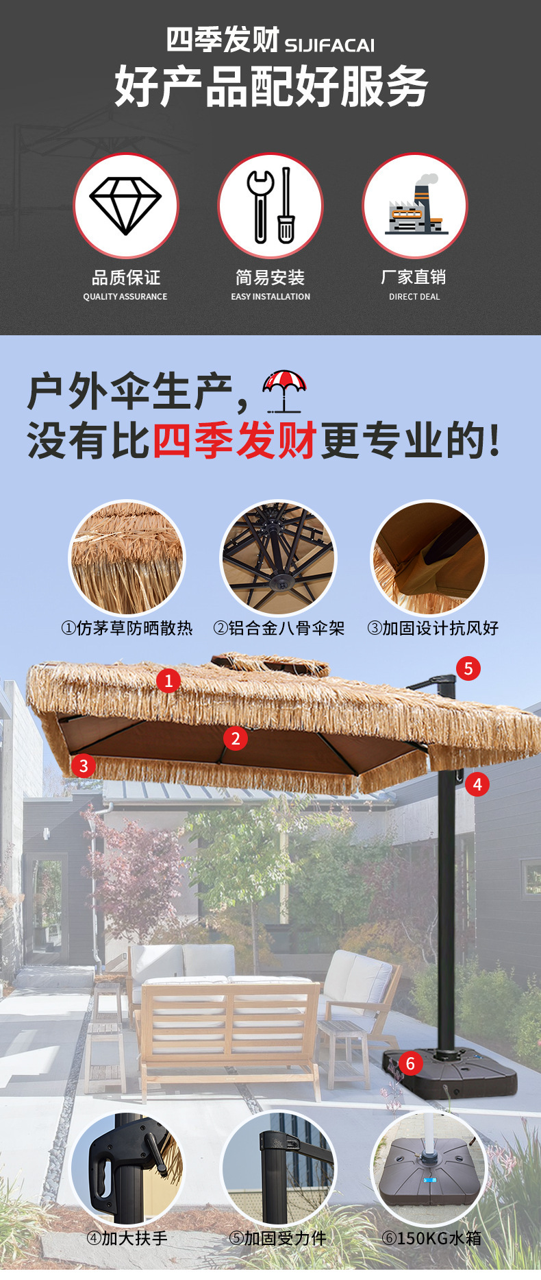 • 짚우산 원형 2.5* 2.5m [150KG 물탱크 베이스 포함]
