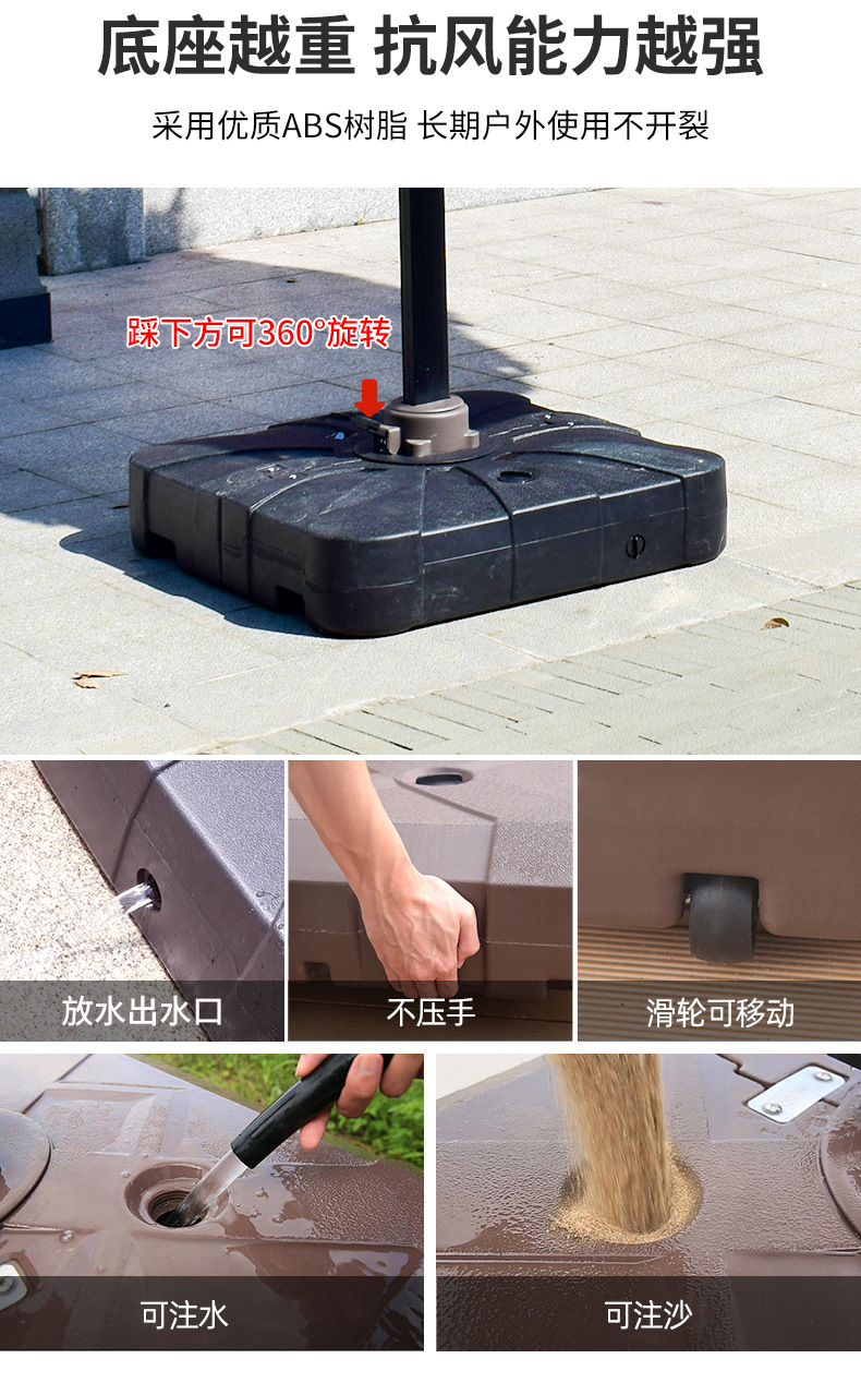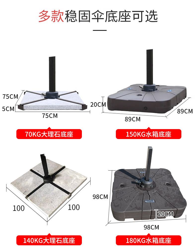 • 나뭇결 컬러 사각 2.5:* 2.5m 소형 알루미늄 행잉 우산 [80KG 원형 대리석 베이스 포함]