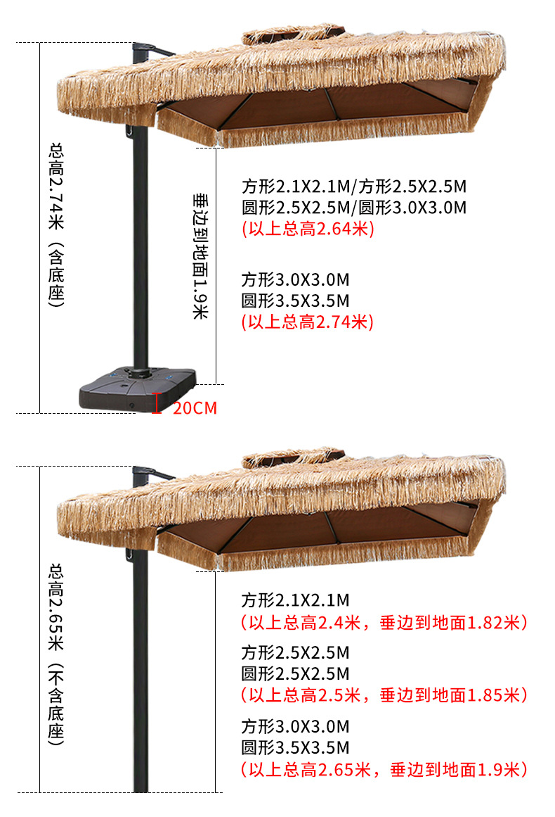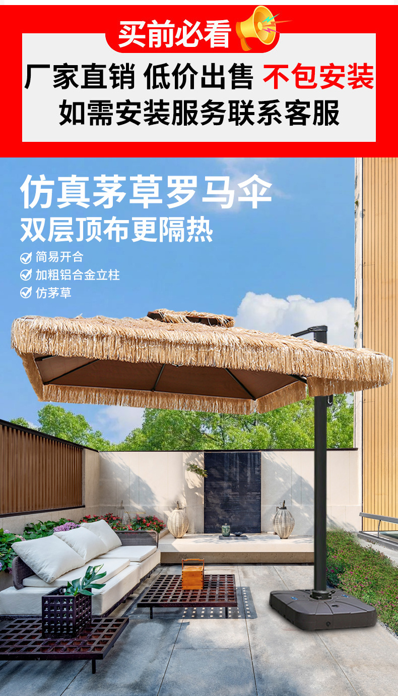 • 짚우산 사각 2.5* 2.5m [대리석 베이스 70KG 포함]