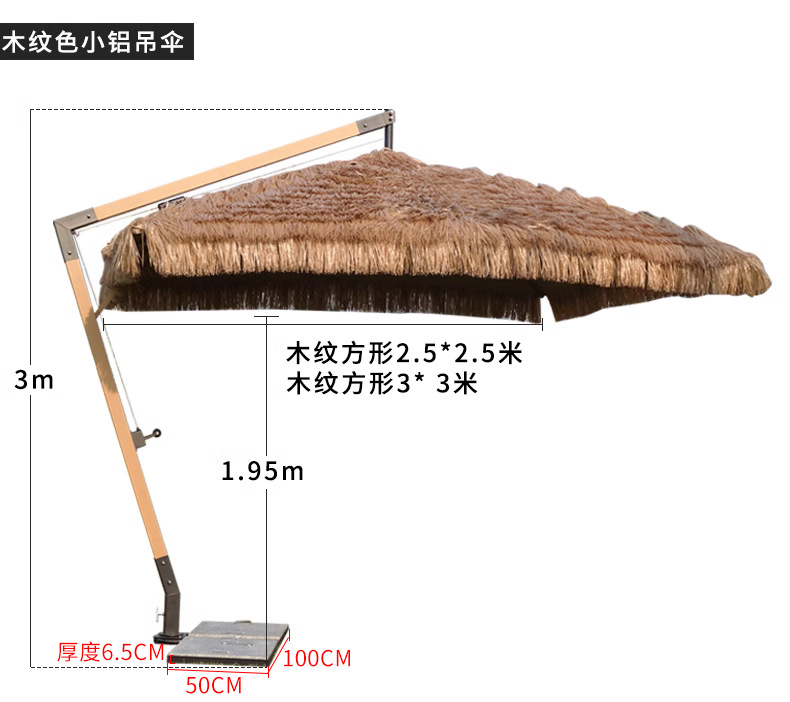 • 나뭇결 색상 사각 3:* 3m 소형 알루미늄 걸이 우산 [80KG 원형 대리석 베이스 포함]