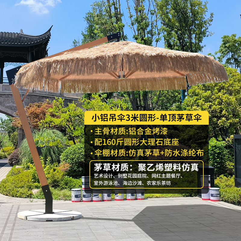 • 짚우산 원형 3* 3m [대리석 베이스 140KG 포함]