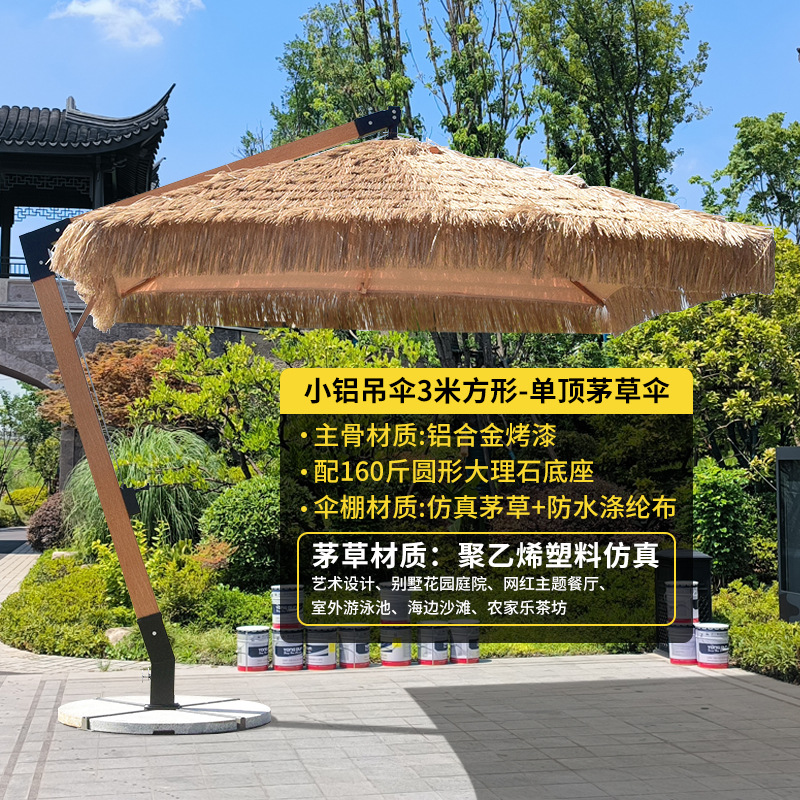 • 짚 우산 사각 3* 3m [대리석 베이스 140KG 포함]
