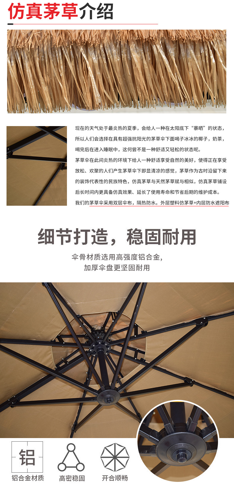 • 짚우산 원형 2.5* 2.5m [대리석 베이스 70KG 포함]