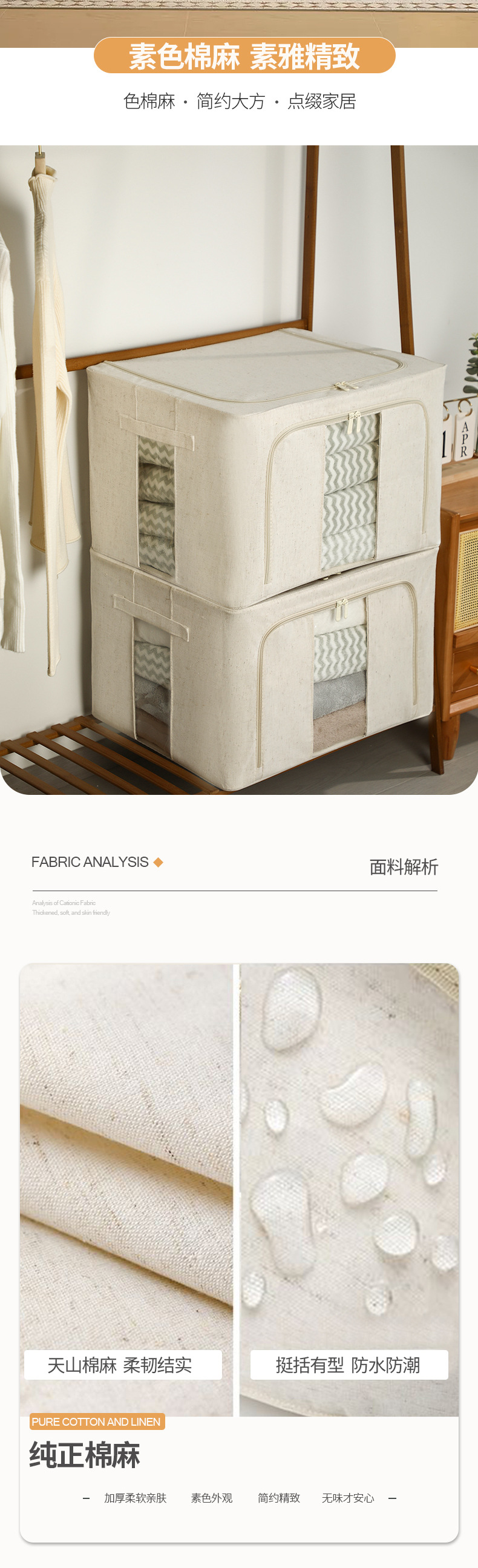 Tianshan 면화와 린넨 보관 상자 가정용 의류 보관 상자 접이식 옷장 방진 보관 상자 보관 캐비닛