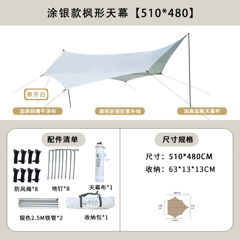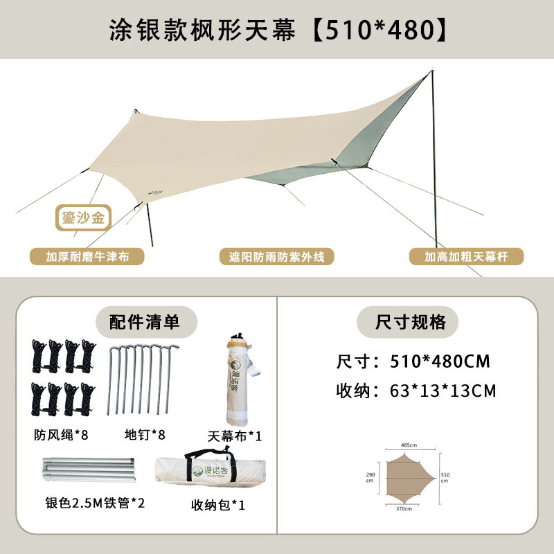 야외 캐노피 텐트 캠핑 휴대용 실버 코팅 자외선 차단제 방수 캐노피 나비 모양 육각 블랙 접착제 캠핑 천막