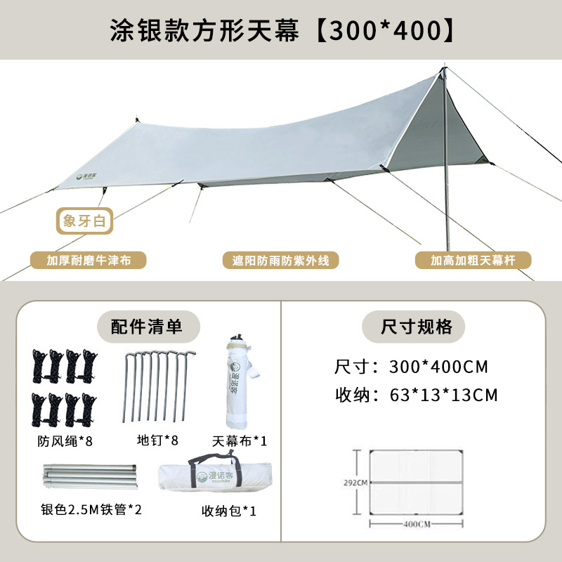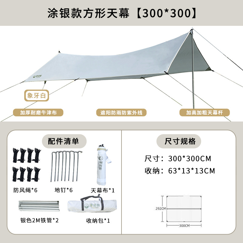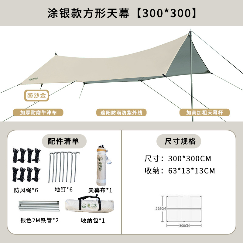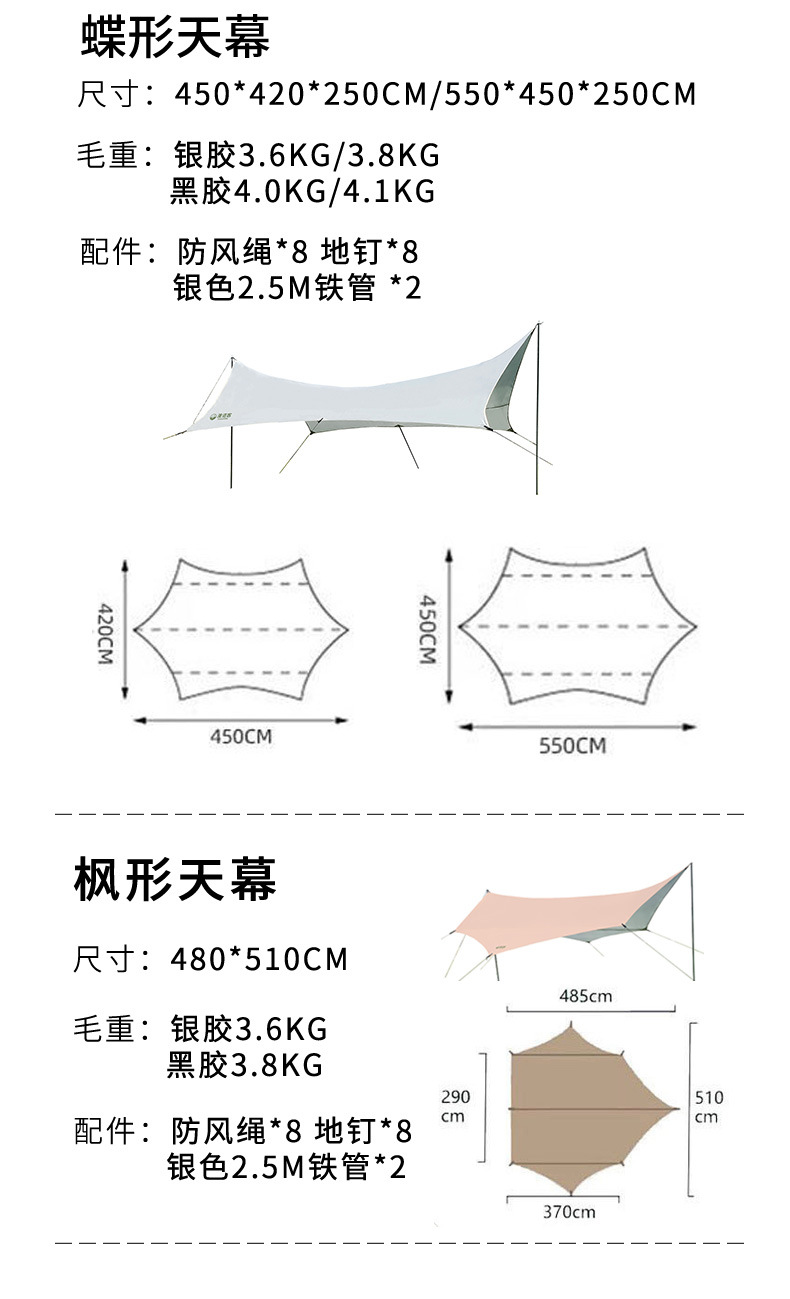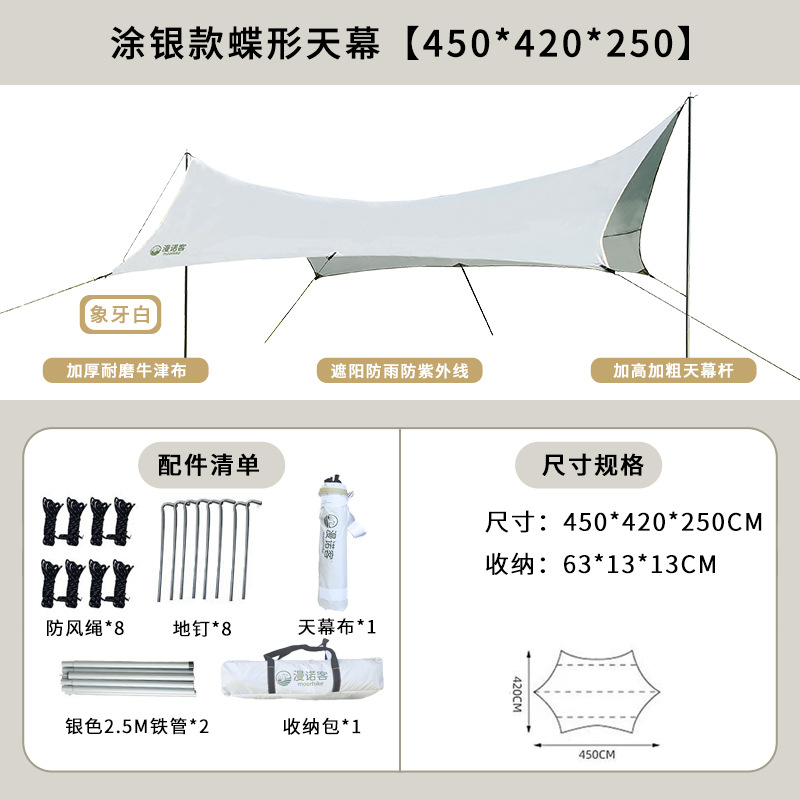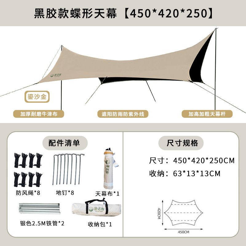 야외 캐노피 텐트 캠핑 휴대용 실버 코팅 자외선 차단제 방수 캐노피 나비 모양 육각 블랙 접착제 캠핑 천막스토어 가기