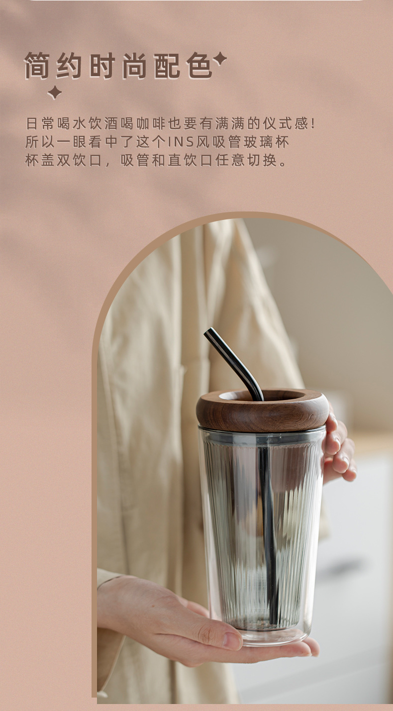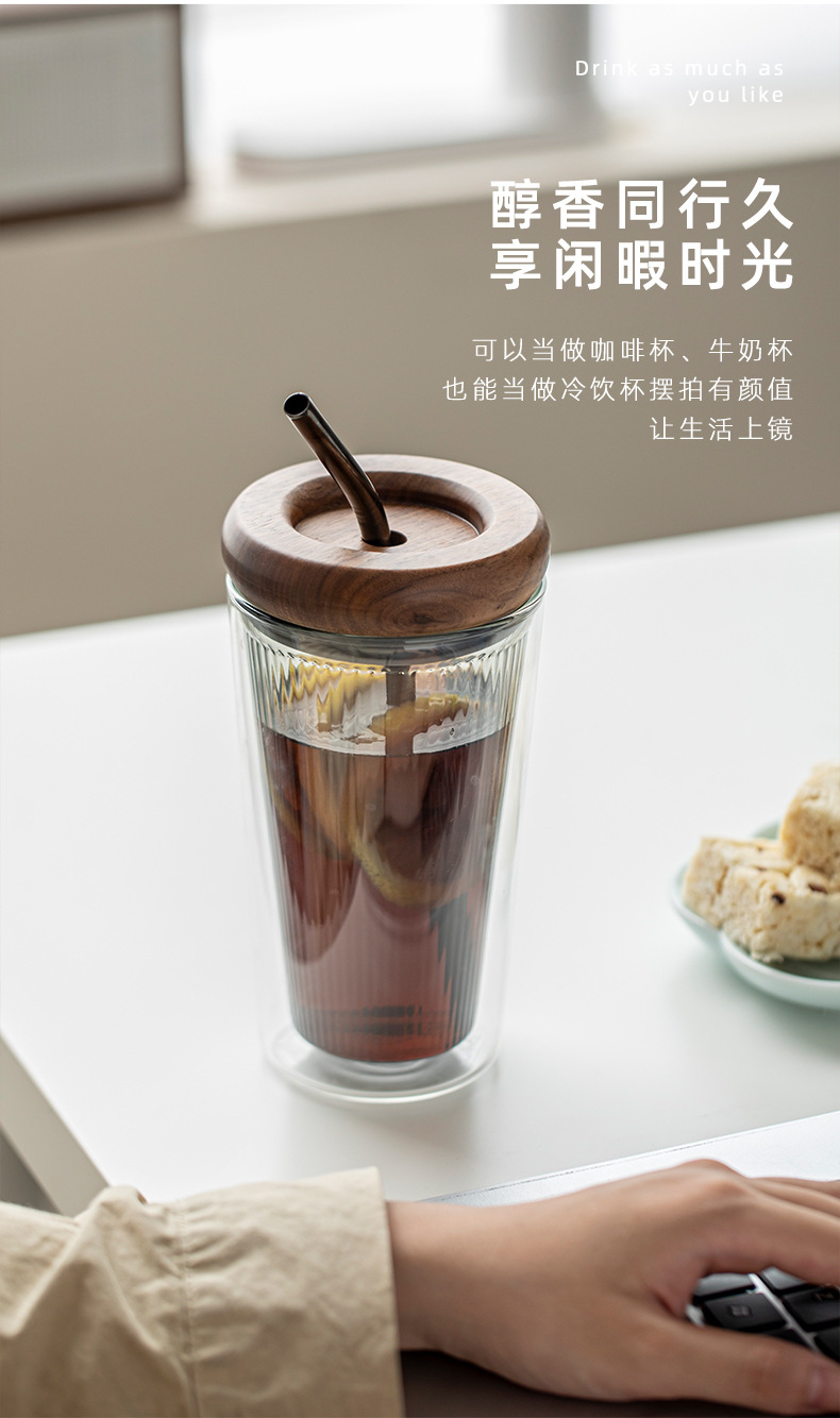 고부가가치 유리 시피 컵 대용량 암수 사무실 2 중 컵 뚜껑이 있는 고온 내성 커피잔스토어 가기
