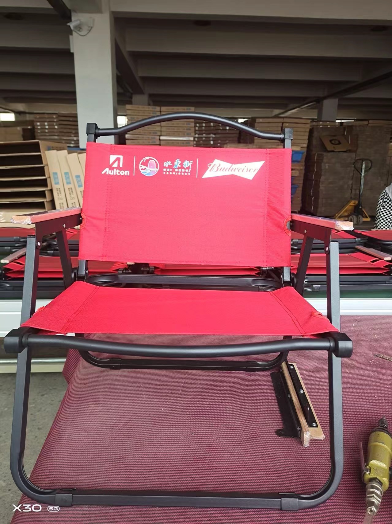 • 새로운 와이드 라운드 튜브 풀 플라스틱 팔걸이 [카키 의자 프레임] 중형 (높이 62cm)