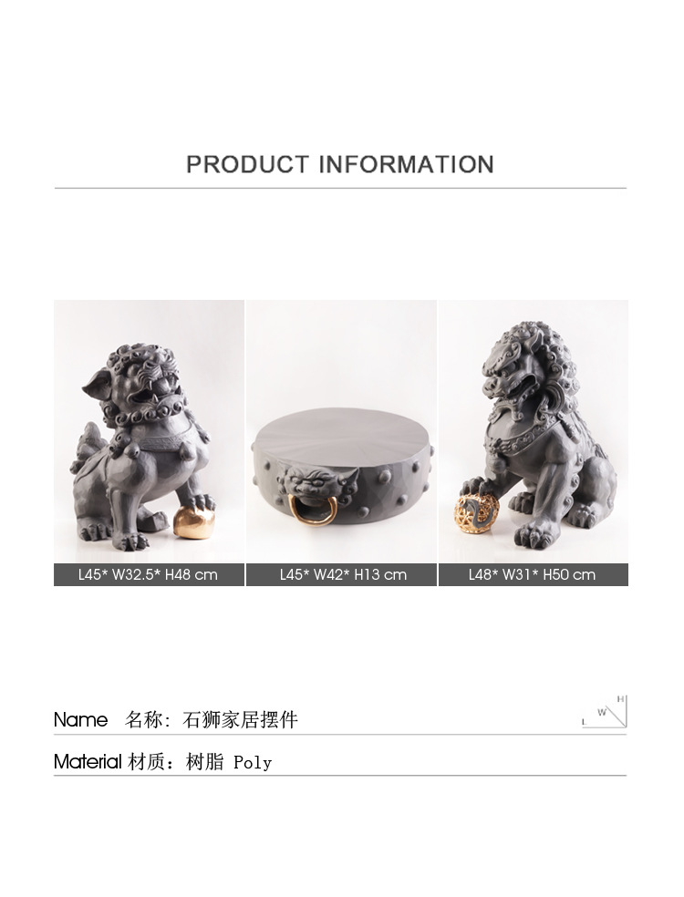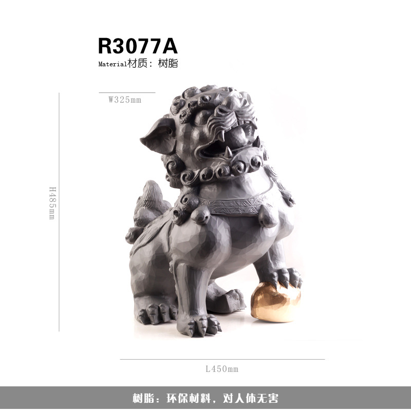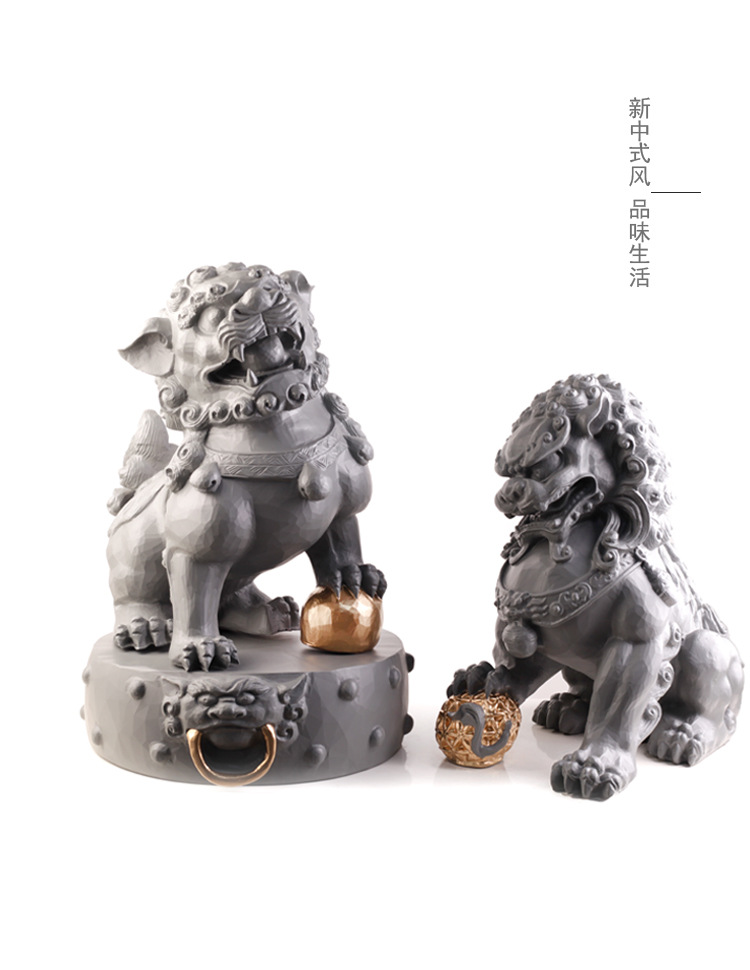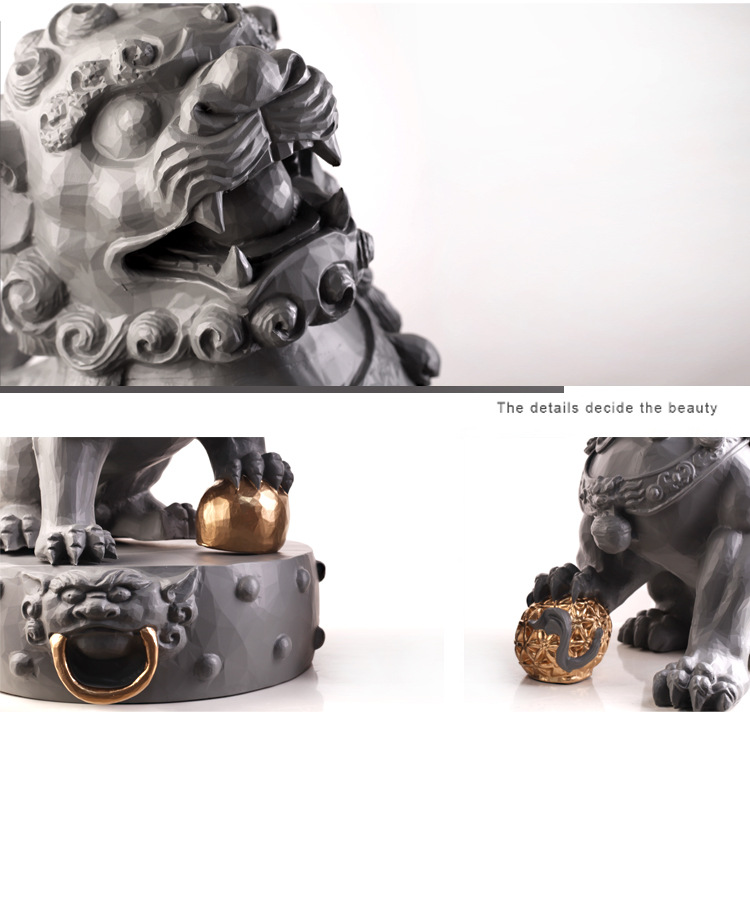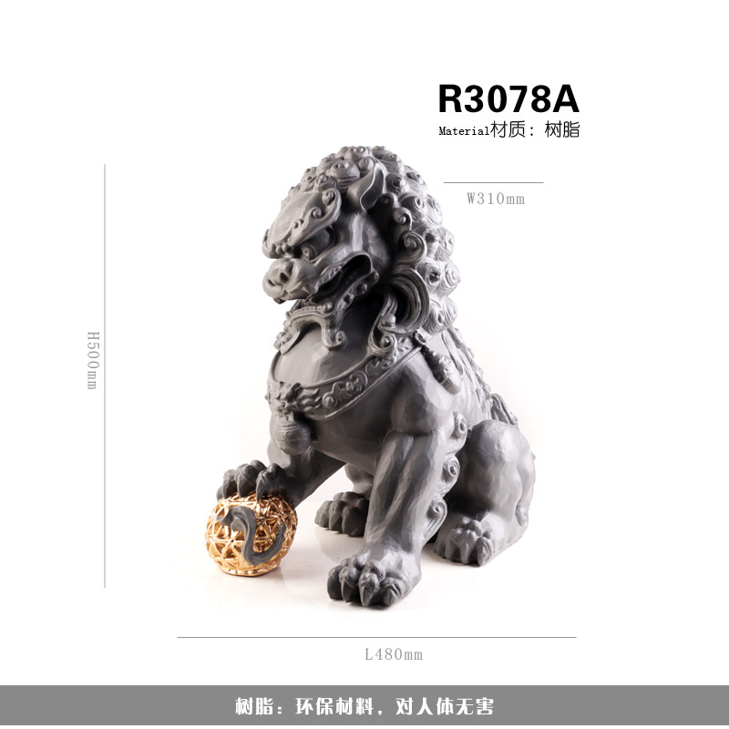 새로운 중국 장식품 돌 사자 수지 조각 공예 거실 입구 홈 부드러운 장식 모델 방 장식