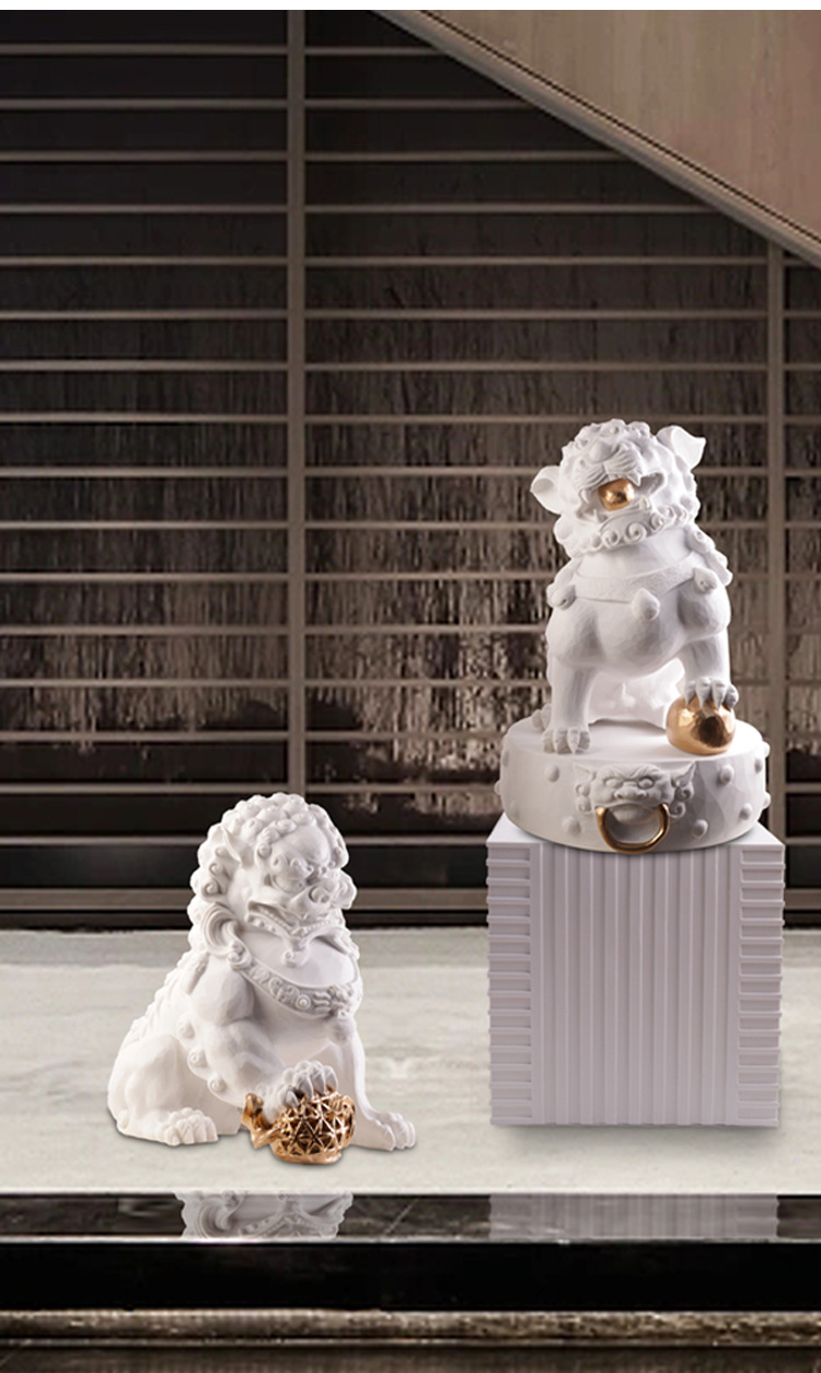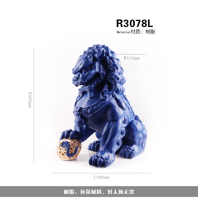 새로운 중국 장식품 돌 사자 수지 조각 공예 거실 입구 홈 부드러운 장식 모델 방 장식스토어 가기