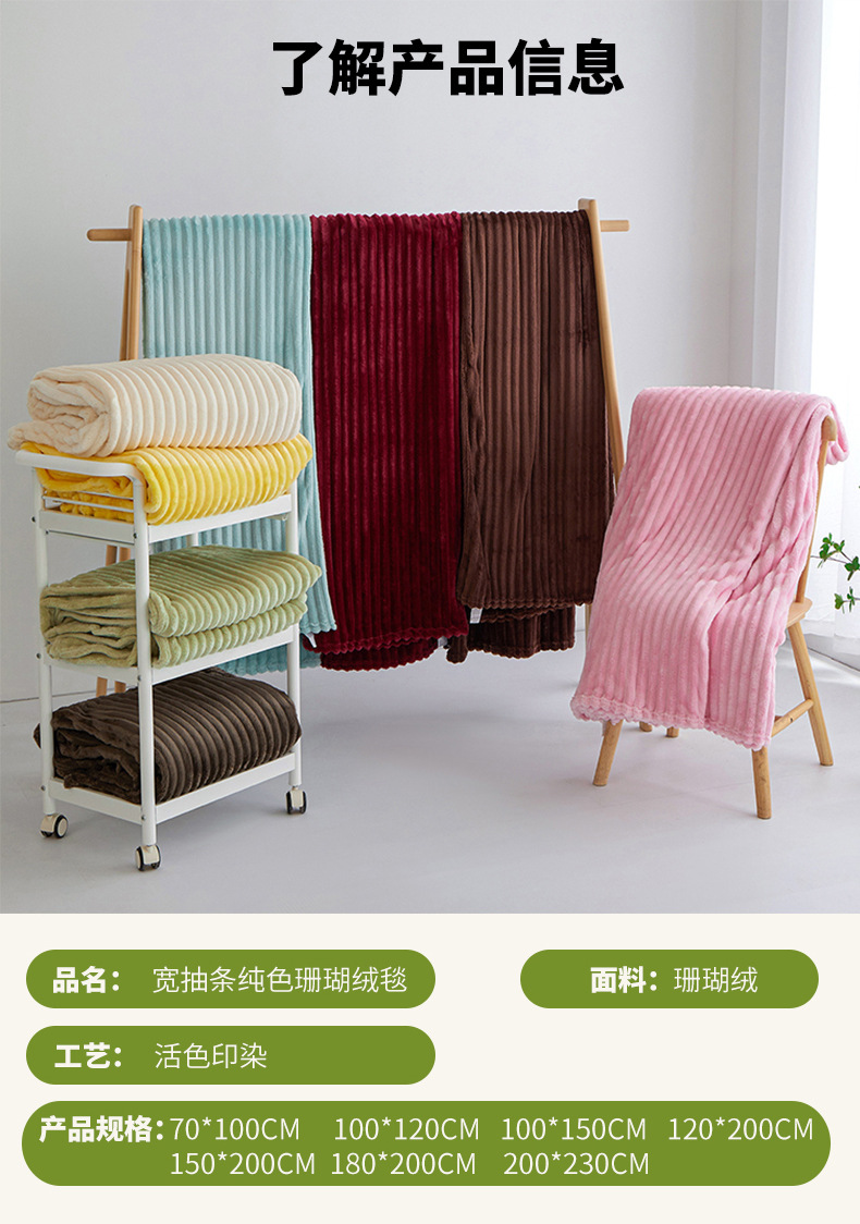크로스 보더 와이드 스트립 단색 담요 산호 양털 담요 Faleiren 담요 소파 타월 에어컨 요가 담요 선물 담요스토어 가기