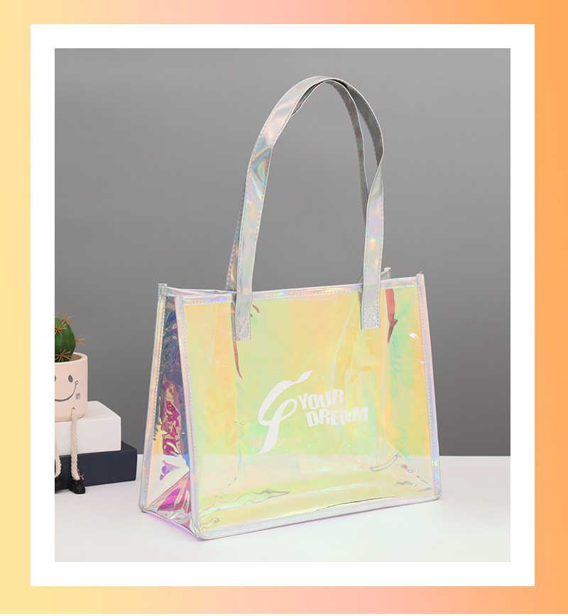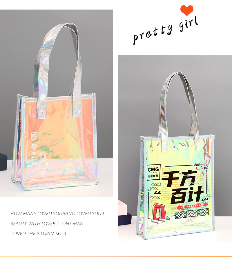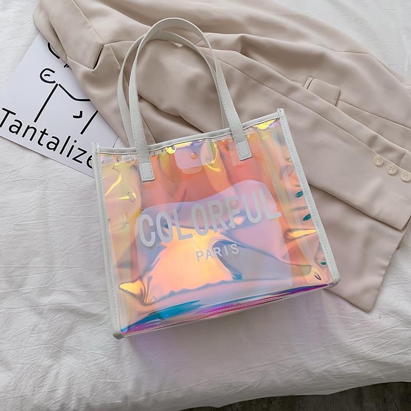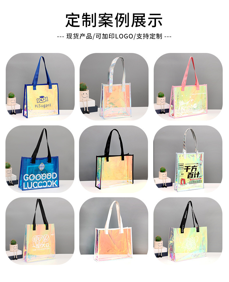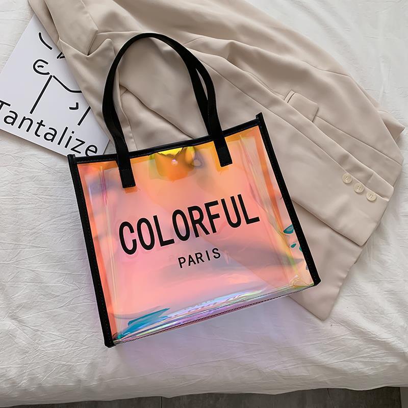 PVC 레이저 핸드백 로고 인기 모델 TPU 환상적인 컬러 젤리 고급 선물 지퍼 플라스틱 투명 핸드백스토어 가기