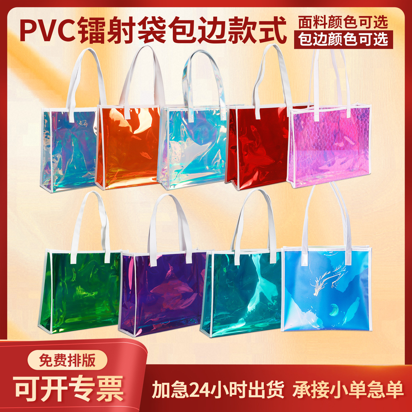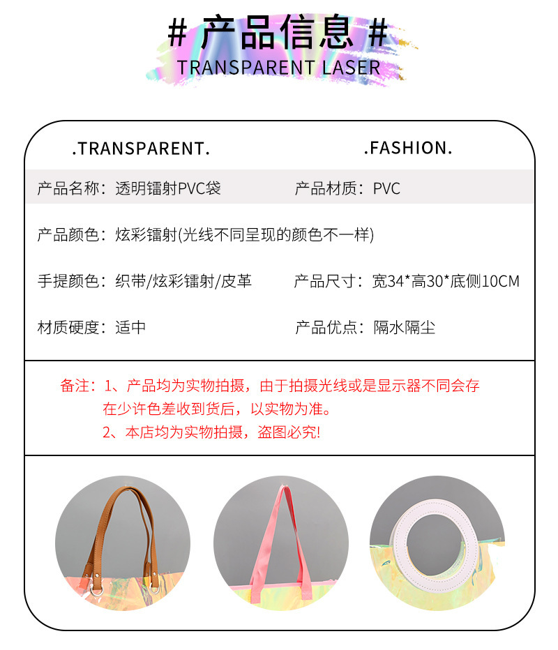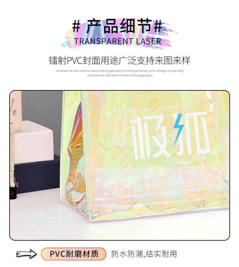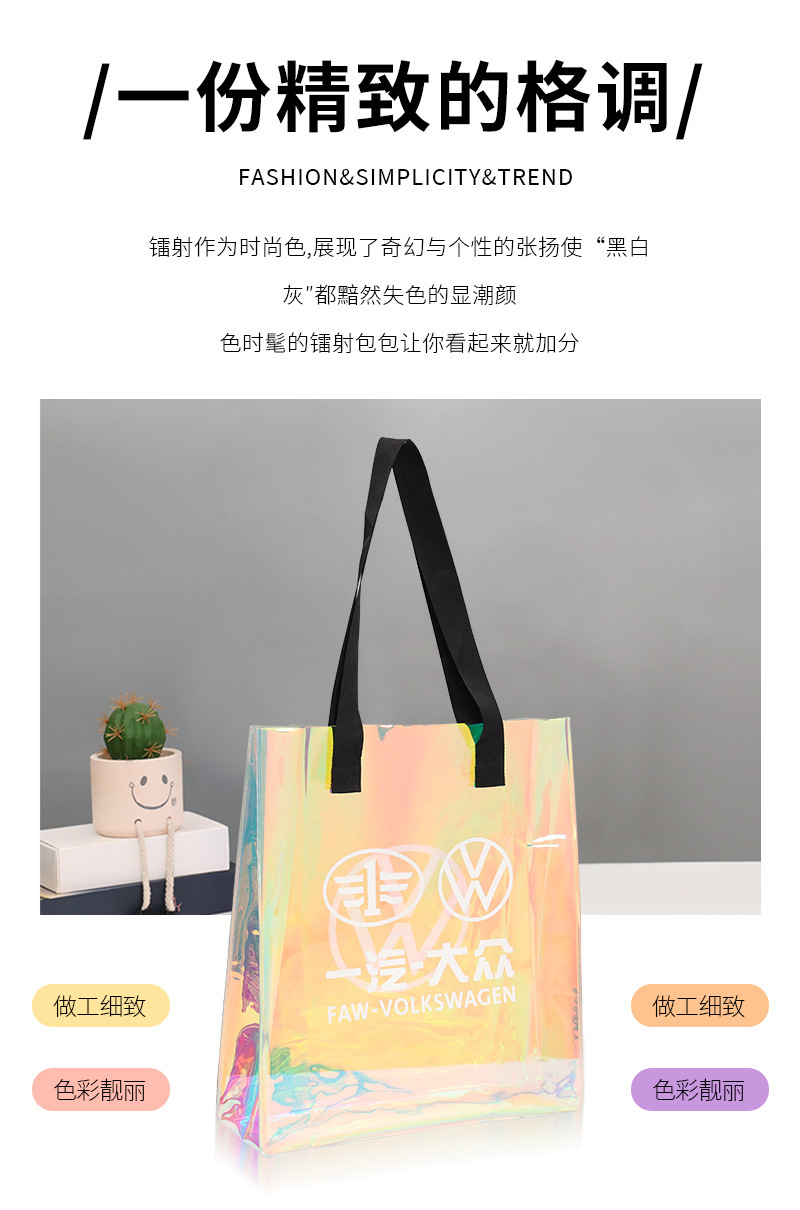 PVC 레이저 핸드백 로고 인기 모델 TPU 환상적인 컬러 젤리 고급 선물 지퍼 플라스틱 투명 핸드백스토어 가기