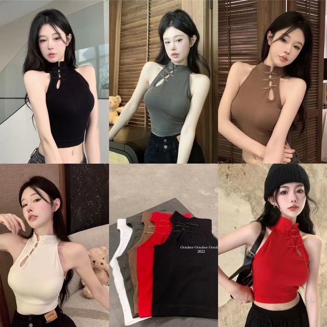 빈티지 청삼 버클 작은 카미솔 조끼 여성 가을 인테리어 순수 스파이스 소녀 섹시한 민소매 짧은 목 탑스토어 가기