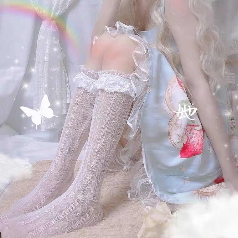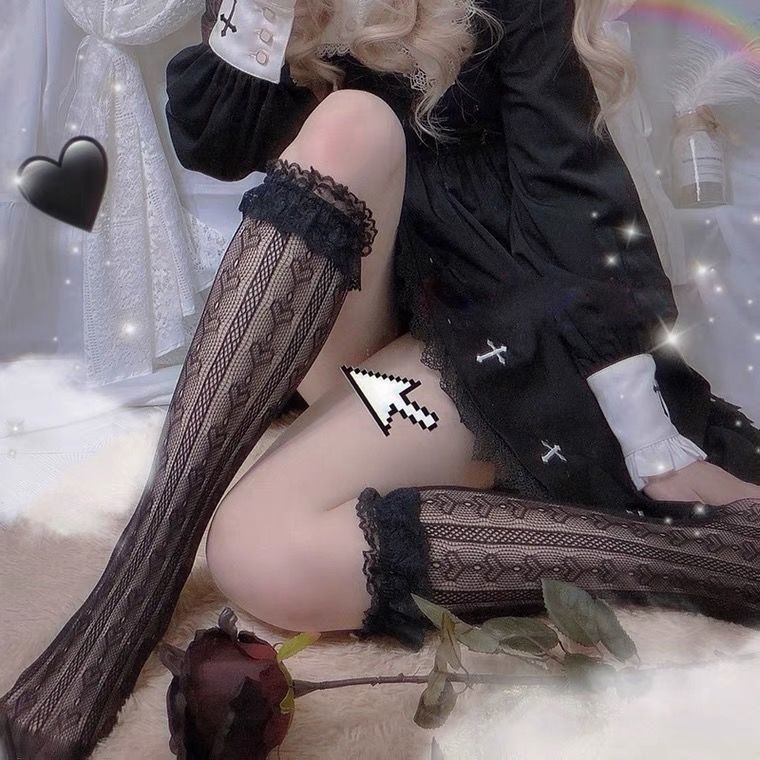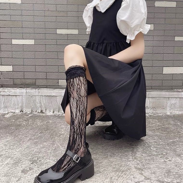 어린이를위한 긴 튜브 레이스 양말 얇은 로리타 화이트 귀여운 중간 길이 양말 INS 트렌디 한 송아지 양말 검은 낚시 그물스토어 가기