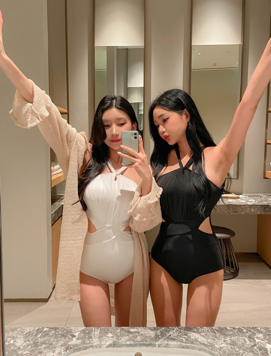 원피스 중공 흑백 2 색 스티칭 원피스 수영복스토어 가기