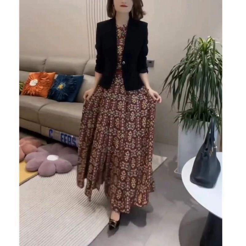 23198 큰 Aimei Yiyuan 봄과 여름 2023 여성을위한 새로운 한국 민소매 긴 원피스 긴 소매 세트