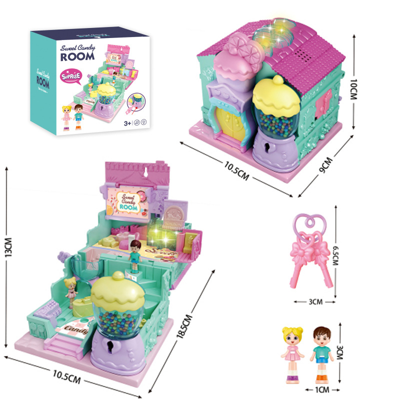 미니 작은 집 장난감 집 소리와 가벼운 성 인형 집 시뮬레이션 장식 어린이 놀이 집 게임 디저트 하우스스토어 가기