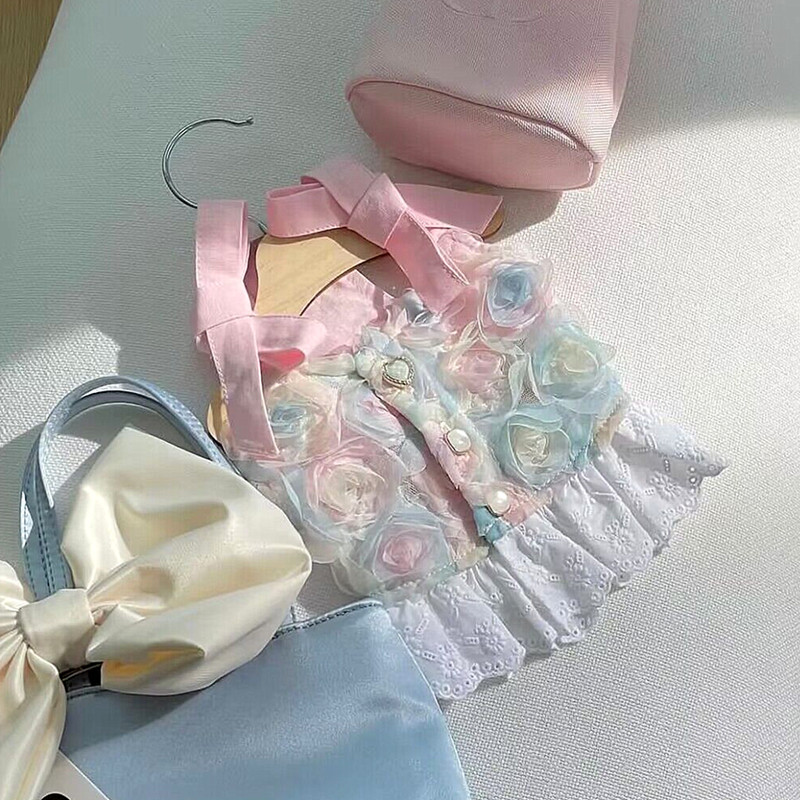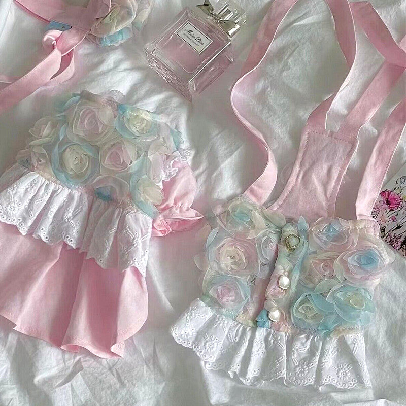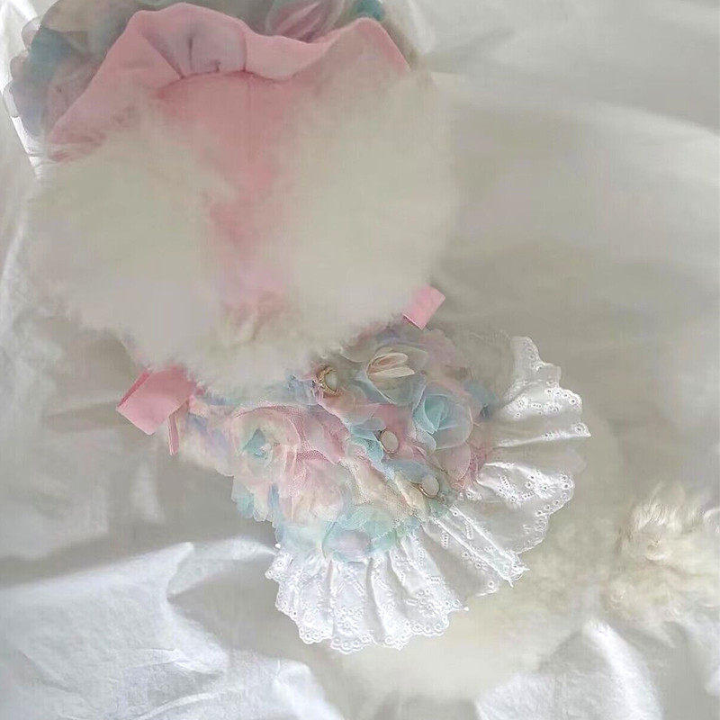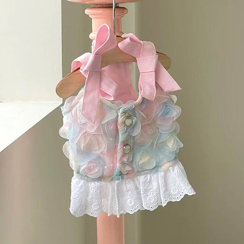 고품질 장미 꽃잎 드레스 애완 동물 개 고양이 테디 비숑 요크셔 테리어 작은 개 옷