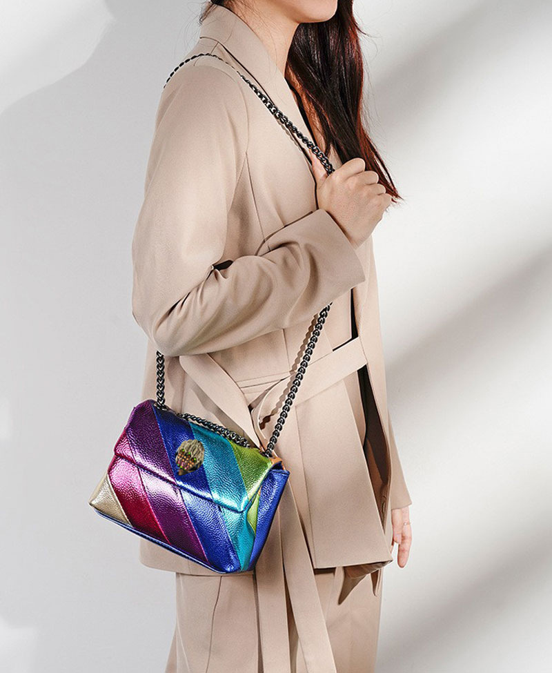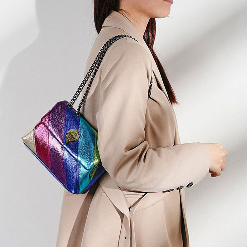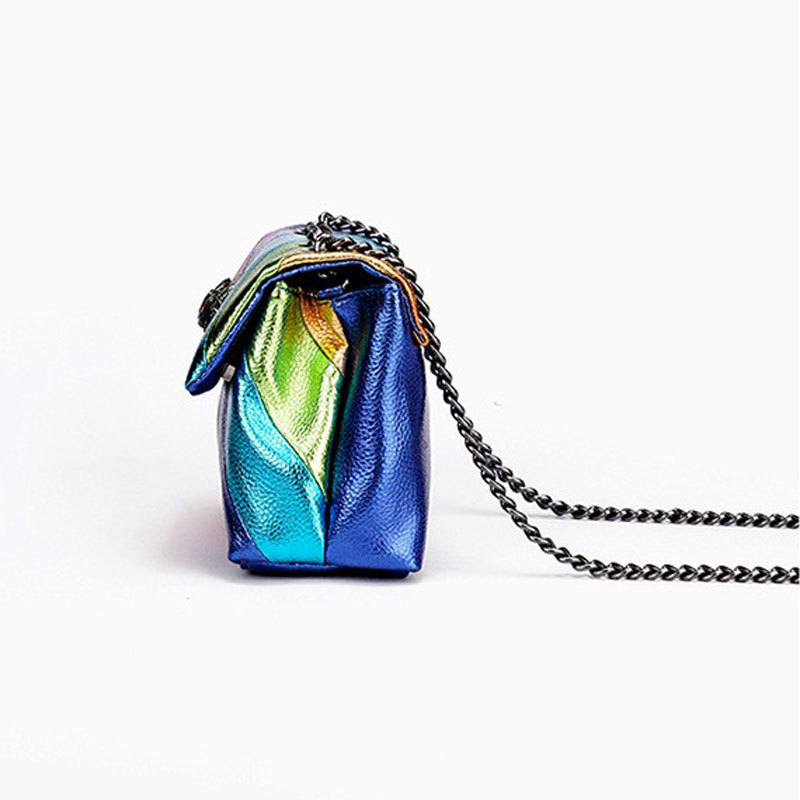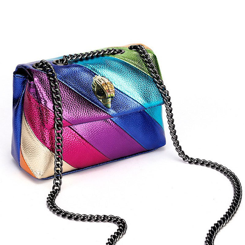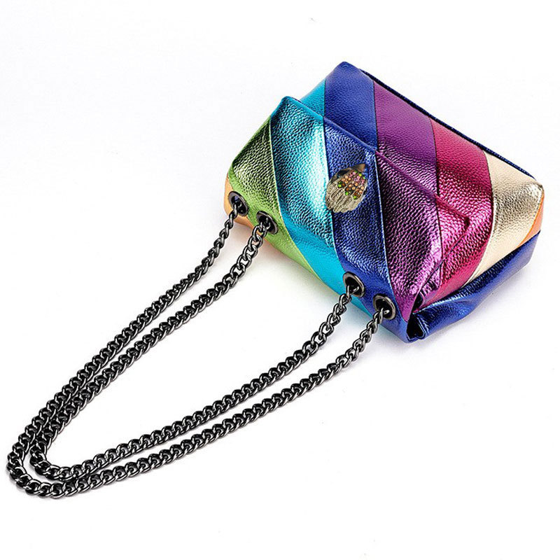 크로스 보더 유럽과 미국 패션 새로운 여성 가방 레인보우 대비 컬러 스플라이스 백 이글 버드 헤드 체인 숄더 크로스 바디 백 여성용 가방스토어 가기