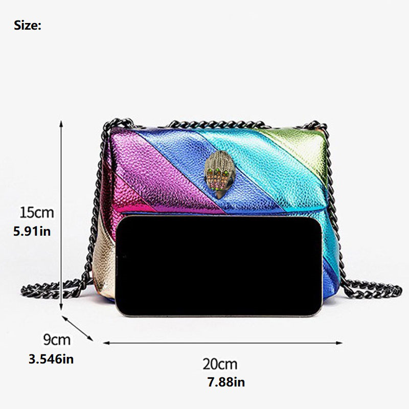 크로스 보더 유럽과 미국 패션 새로운 여성 가방 레인보우 대비 컬러 스플라이스 백 이글 버드 헤드 체인 숄더 크로스 바디 백 여성용 가방