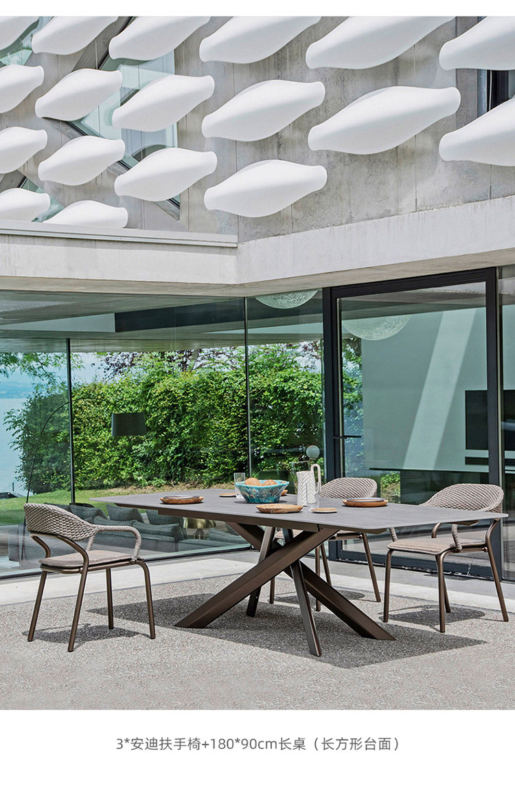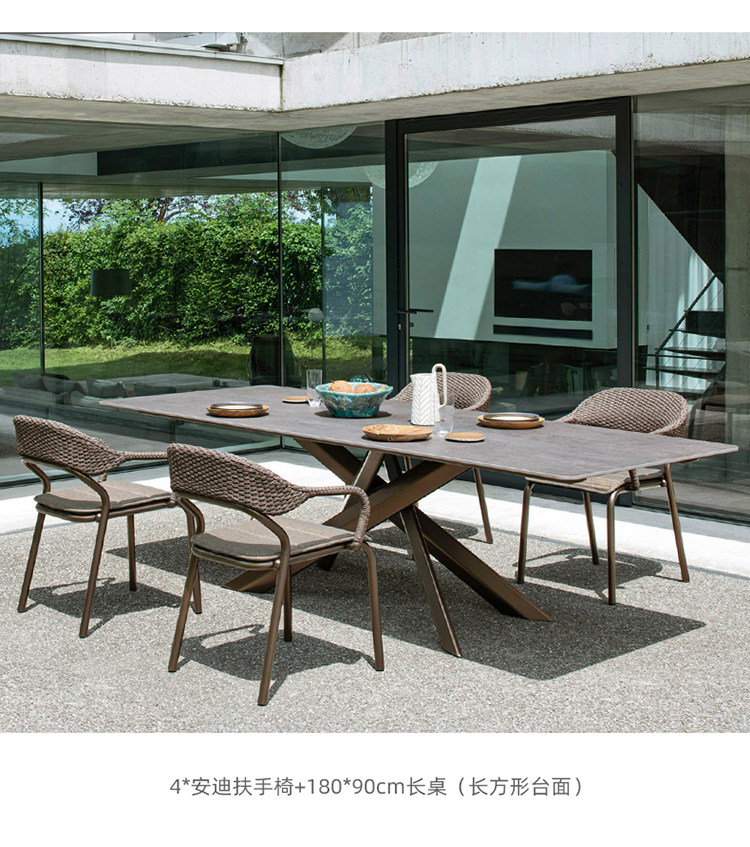 야외 테이블과 의자 조합 안뜰 야외 방수 자외선 차단제 가든 빌라 야외 레저 등나무 의자 록 보드 식탁스토어 가기